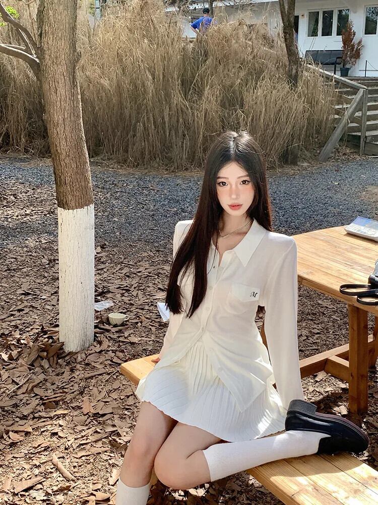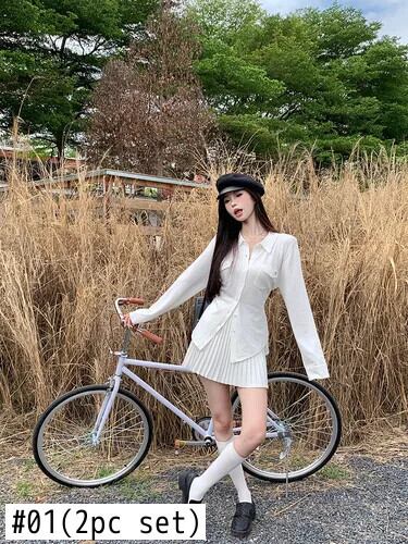 Sweet Girl 純粋セクシースーツ秋ターンダウンカラートップ A ラインプリーツミニスカート 2 点セット 大人ガーリー スウィート キュート カジュアル オータム 秋物 Aライン ピュア