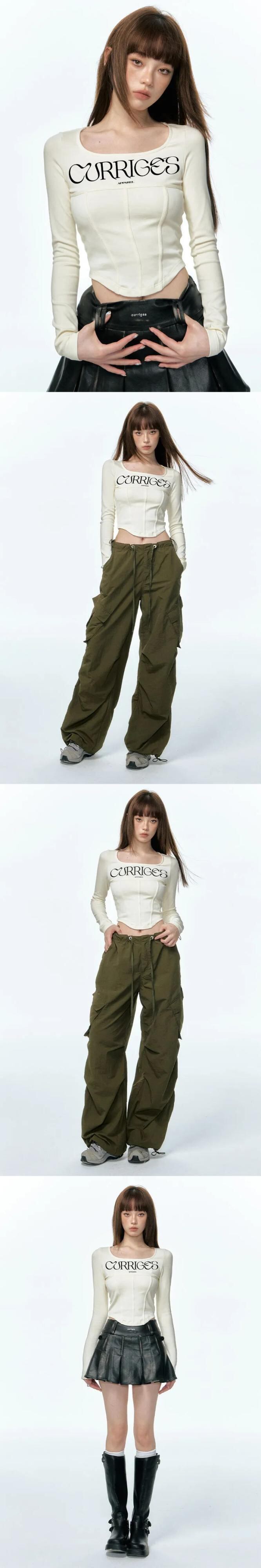 アメリカンレトロラウンドネックスリム長袖 Tシャツ春/秋レタープリント多用途ボトムトップ ロング スプリング 春物 オータム 秋物 Oネック