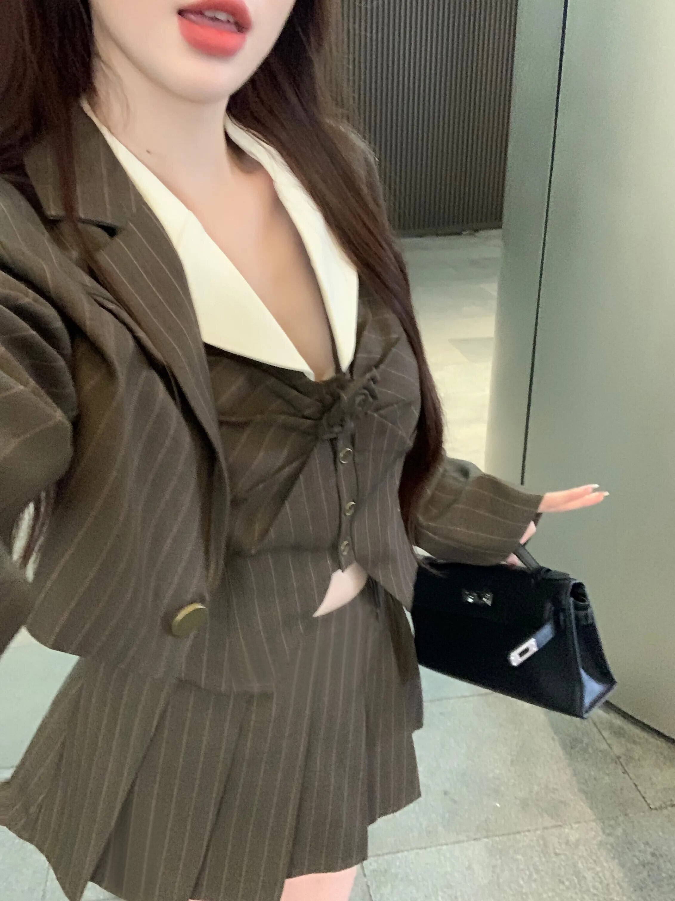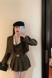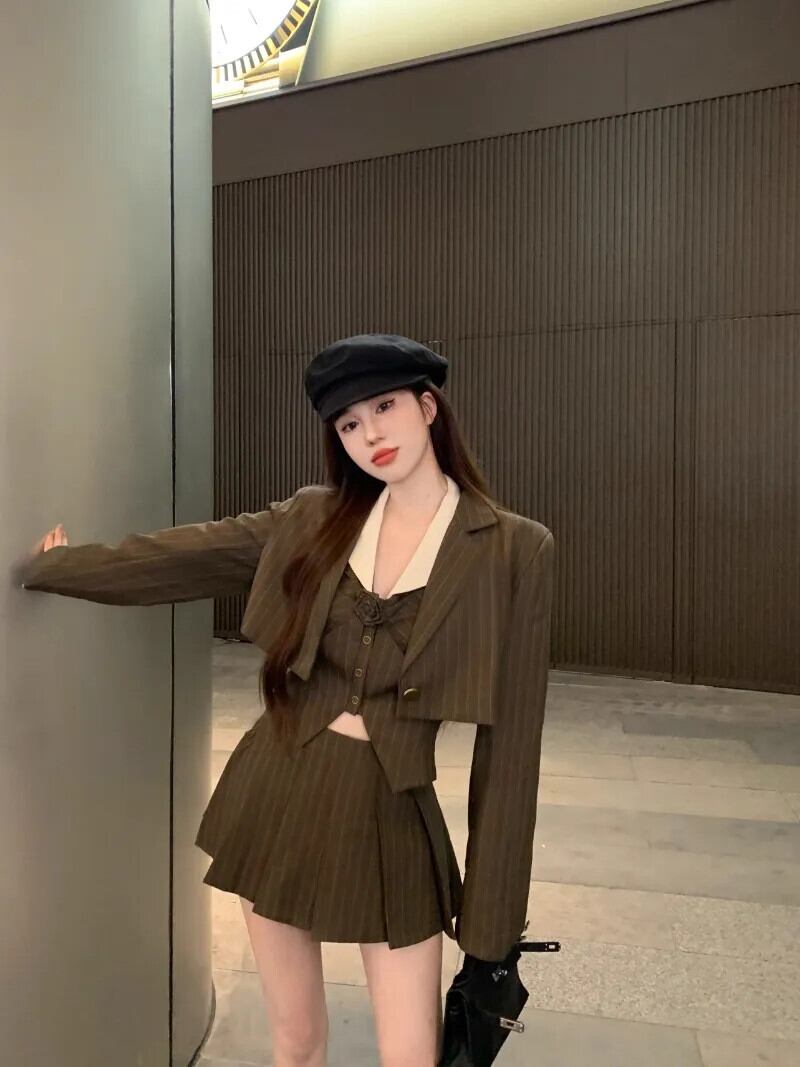 甘いホットガールアメリカンレトロスタイルスーツ秋コートスリムフィットベストウエストミニスカート 3 点セット 大人ガーリー スウィート キュート カジュアル オータム 秋物