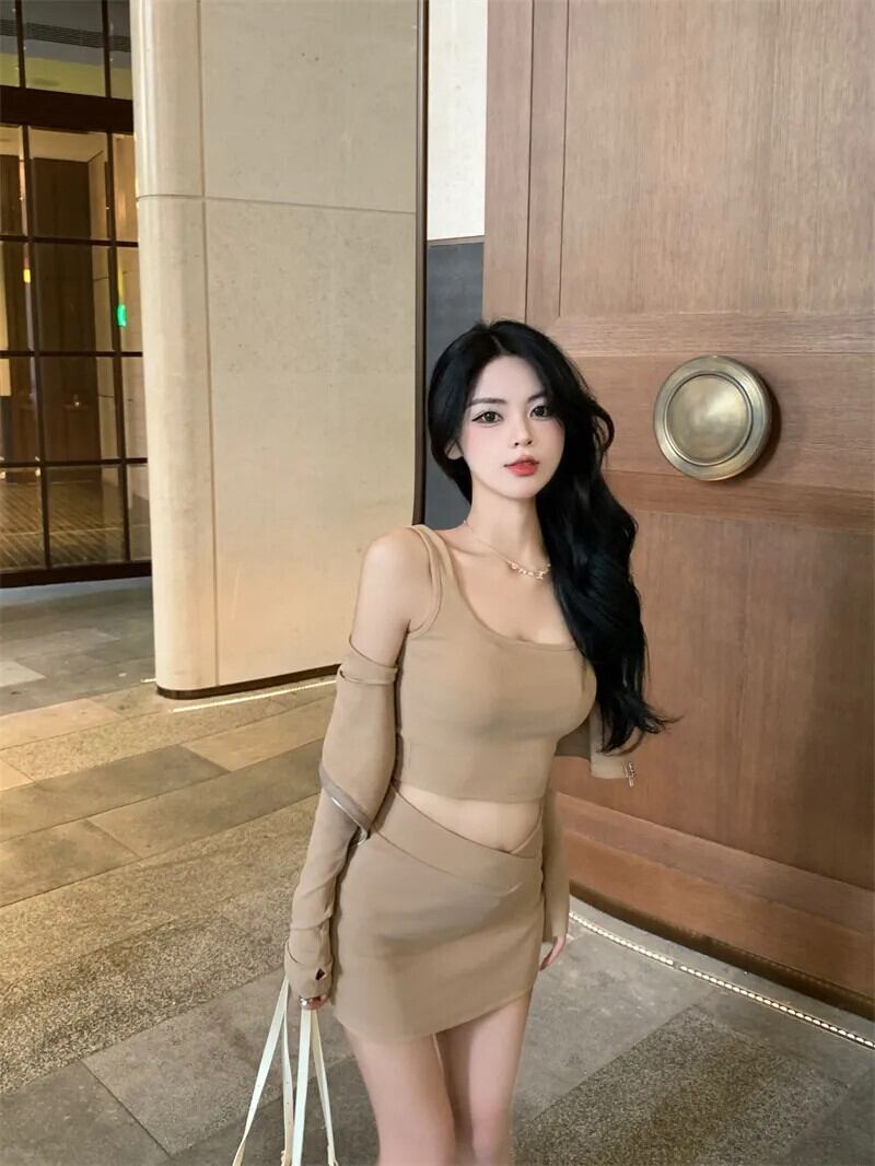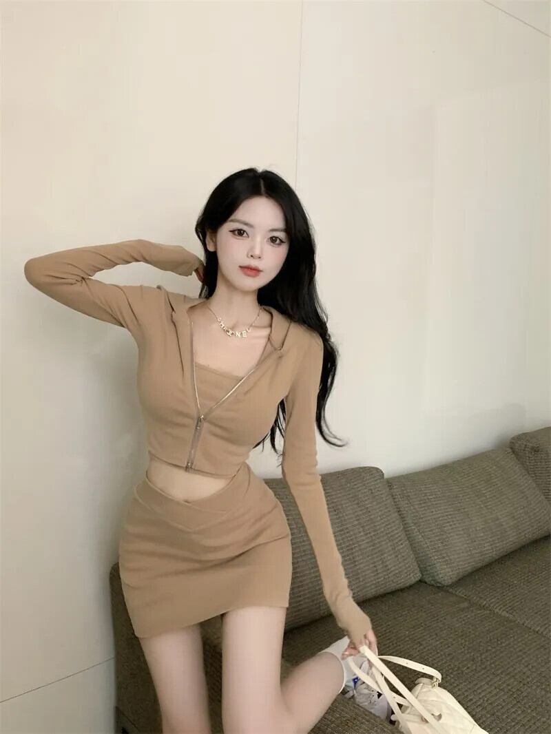 ホットガールズ純粋セクシースーツ秋フード付きカーディガンストラップタンクトップラップヒップショートスカート 3 点セット オータム 秋物 ピュア