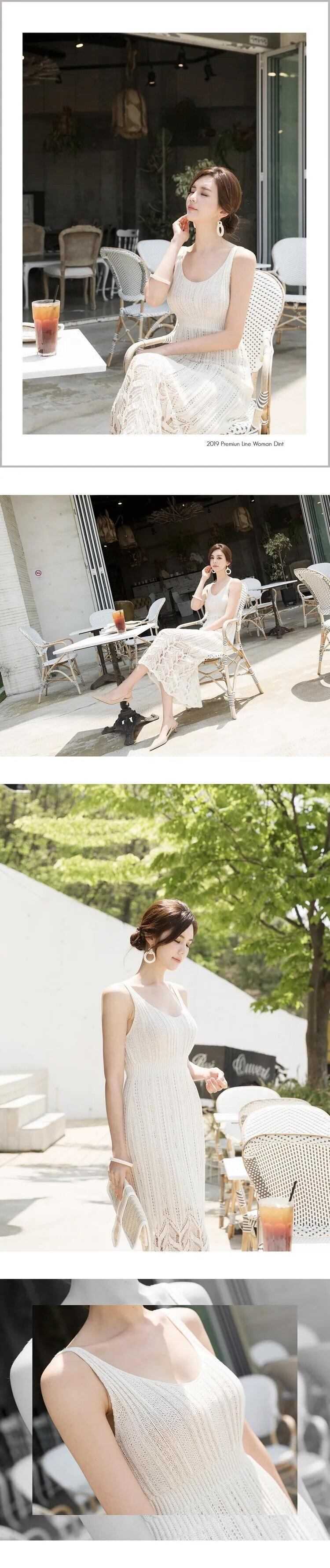 甘いホットガールノースリーブ V ネックウールニットサスペンダードレス夏ローカットセクシーアウトドレス 大人ガーリー スウィート キュート カジュアル サマー 夏物 Vネック