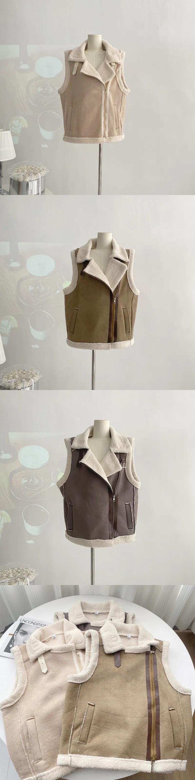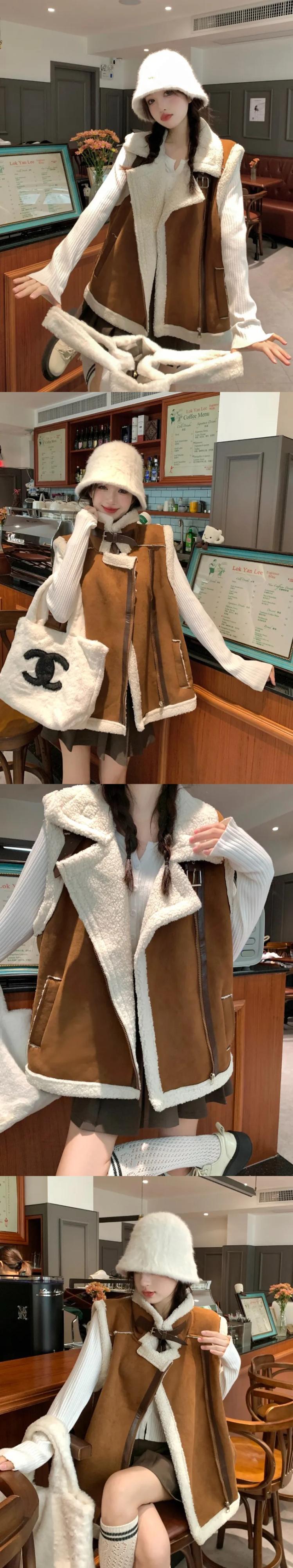 甘いホットガールラムウール綿ベストコート秋ターンダウン襟暖かいノースリーブラムウールベスト コットン 大人ガーリー スウィート キュート カジュアル オータム 秋物