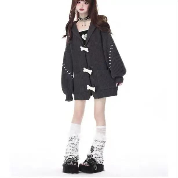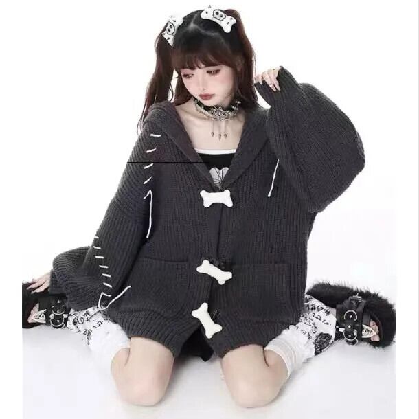ホットガール Y2K スタイル文化骨セーターコート秋/冬フード付きニットカーディガン オータム 秋物 ウィンター 冬物