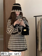 スイートガールスーツ レディース 秋チェック柄長袖コート ラップヒップショートスカート 2点セット ロング 大人ガーリー スウィート キュート カジュアル オータム 秋物