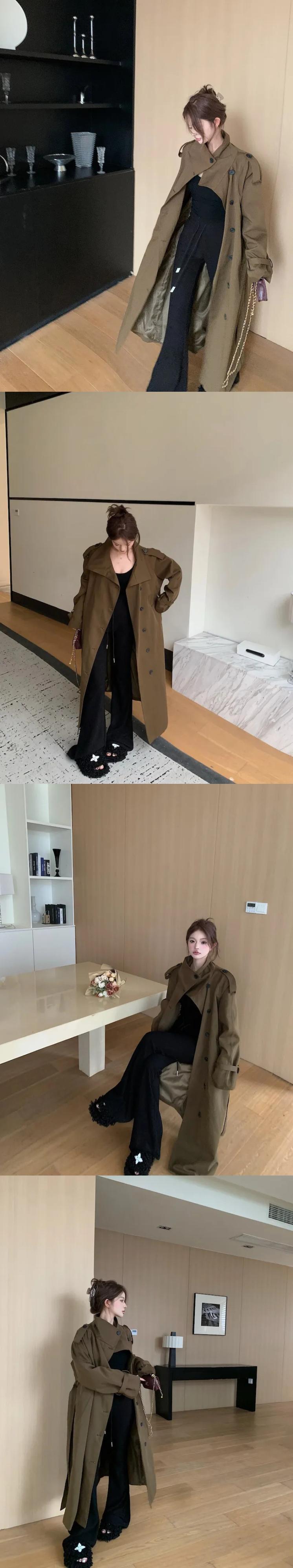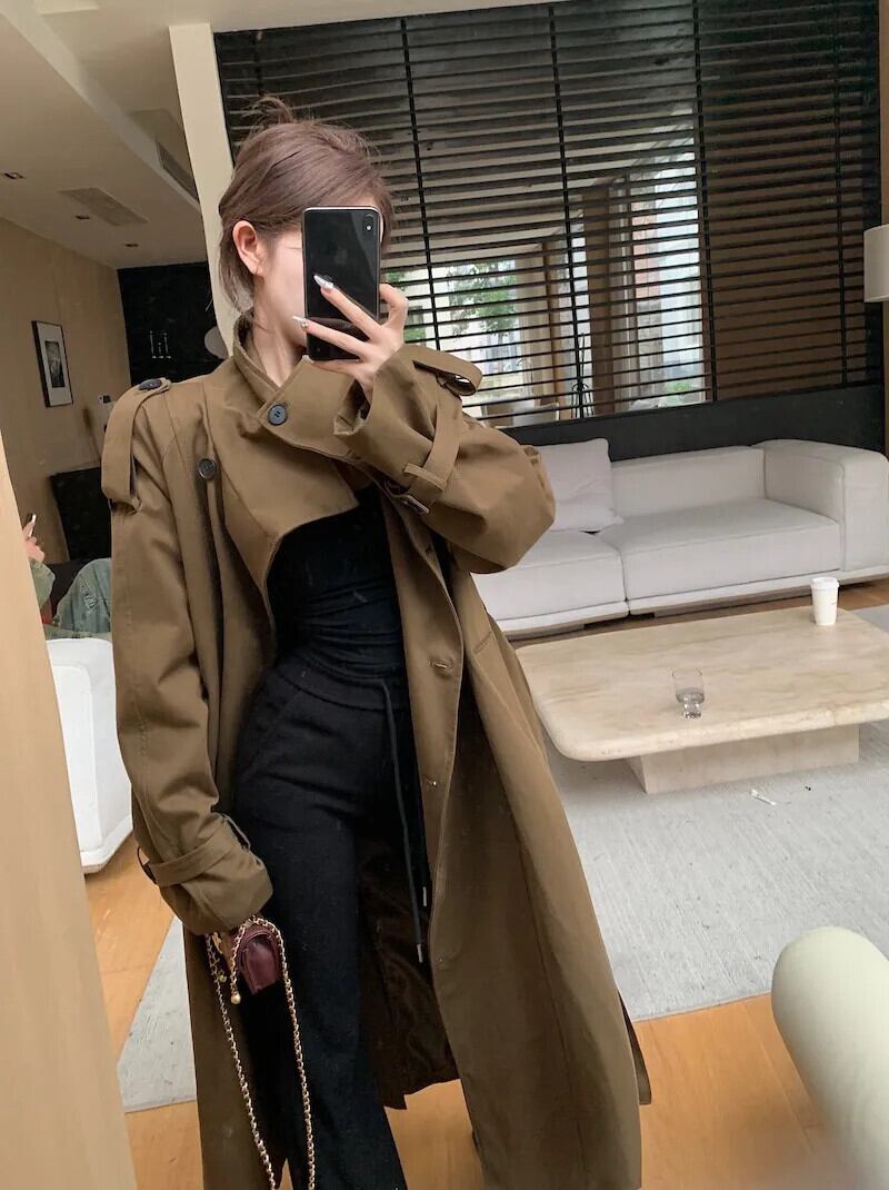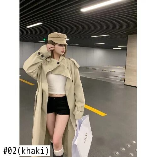 甘いホットガール長袖トレンチコート秋スタイルスリムフィットベルトスタンドカラーコート ロング 大人ガーリー スウィート キュート カジュアル オータム 秋物 ハーネス