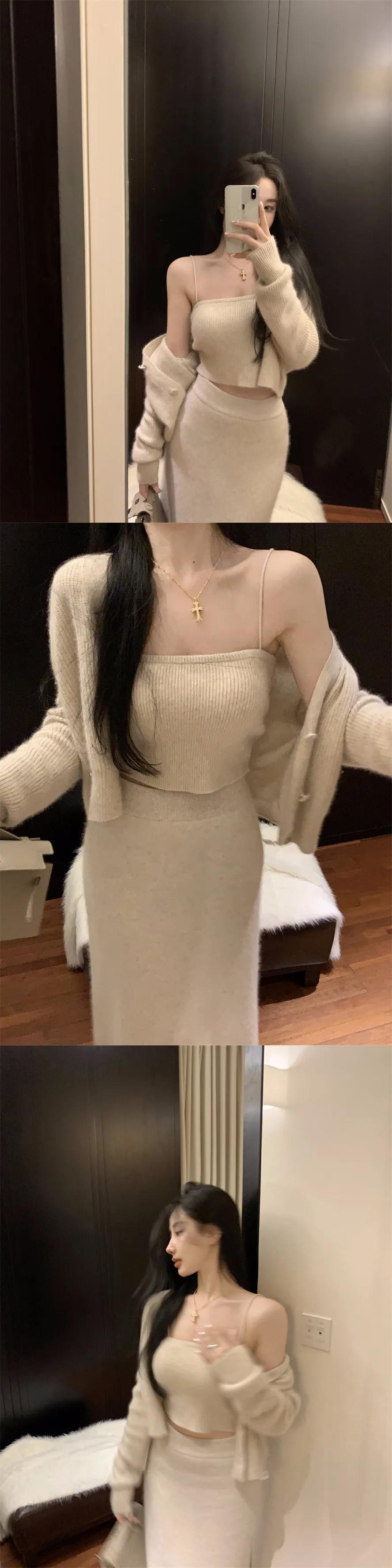 Sweet Girl 純粋セクシースーツ秋キャミソールショートニットコートウエストラップヒップスカート 3 点セット 大人ガーリー スウィート キュート カジュアル オータム 秋物 ピュア