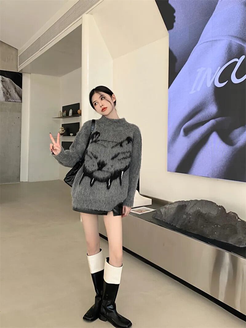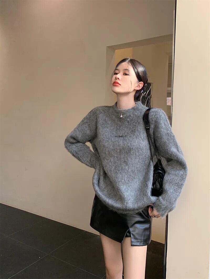 甘いホットガールモヘアセーター秋と冬多用途ルーズ長袖プルオーバートップ ロング 大人ガーリー スウィート キュート カジュアル オータム 秋物 ウィンター 冬物