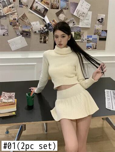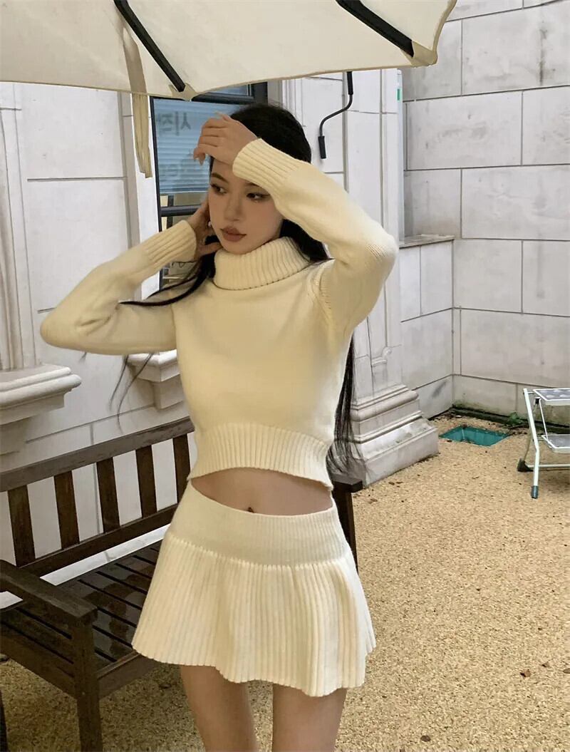 甘いホットガールレトロスーツ秋ネックニットウエスト A ラインショートスカート 2 点セット 大人ガーリー スウィート キュート カジュアル オータム 秋物 Aライン