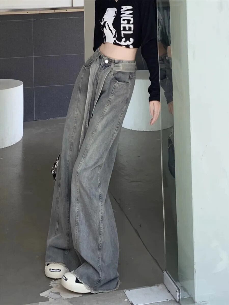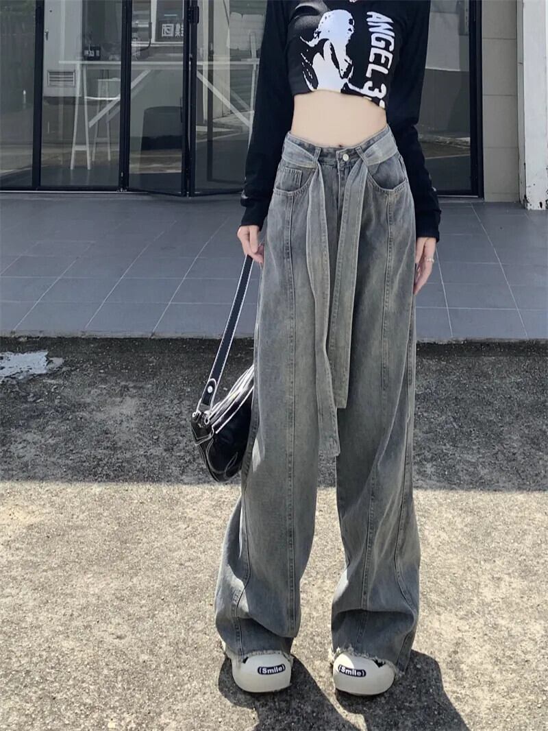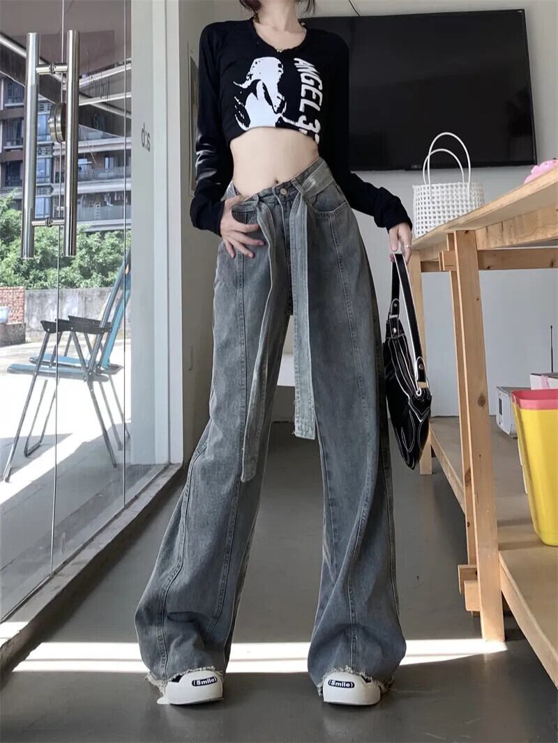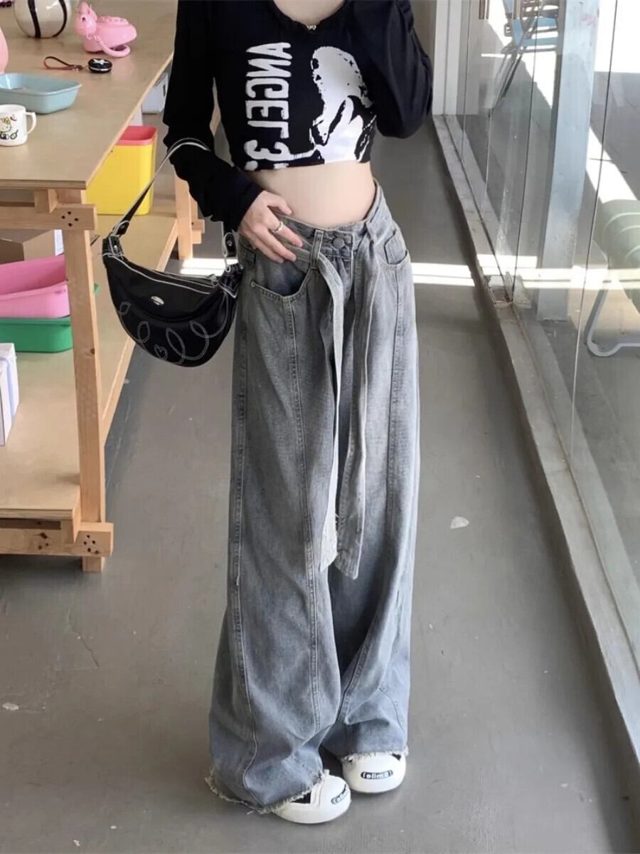 甘いホットガールジーンズ春と秋ストレートワイドレッグパンツ床ドラッグパンツ 大人ガーリー スウィート キュート カジュアル スプリング 春物 オータム 秋物 ワイドパンツ