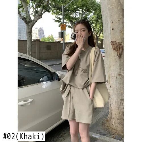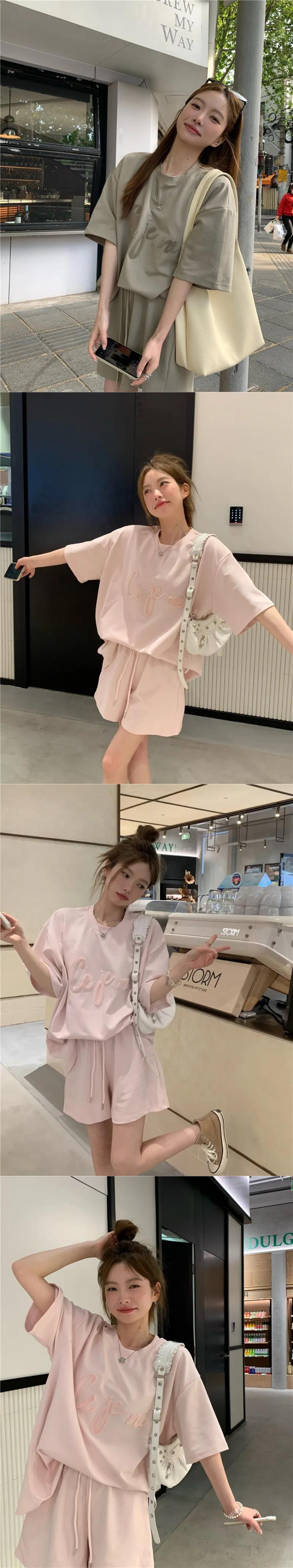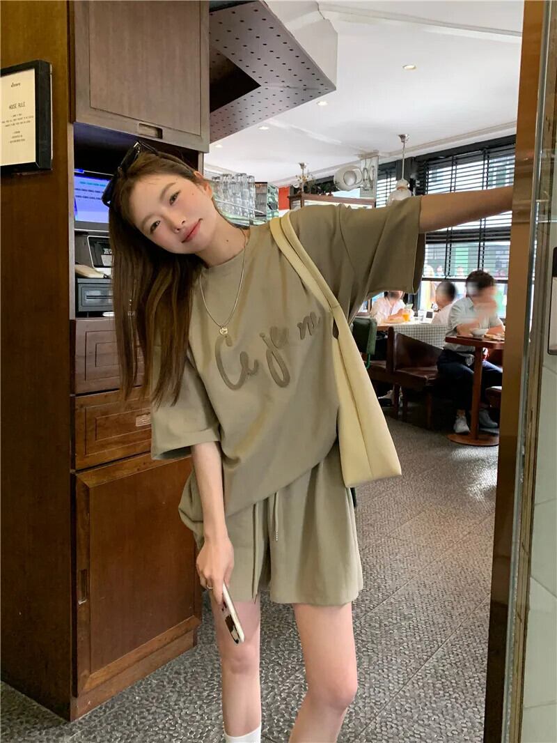 アメリカンホットガールスーツ夏レタープリントルーズTシャツウエストショーツ2点セット サマー 夏物 ブルマー