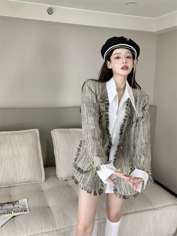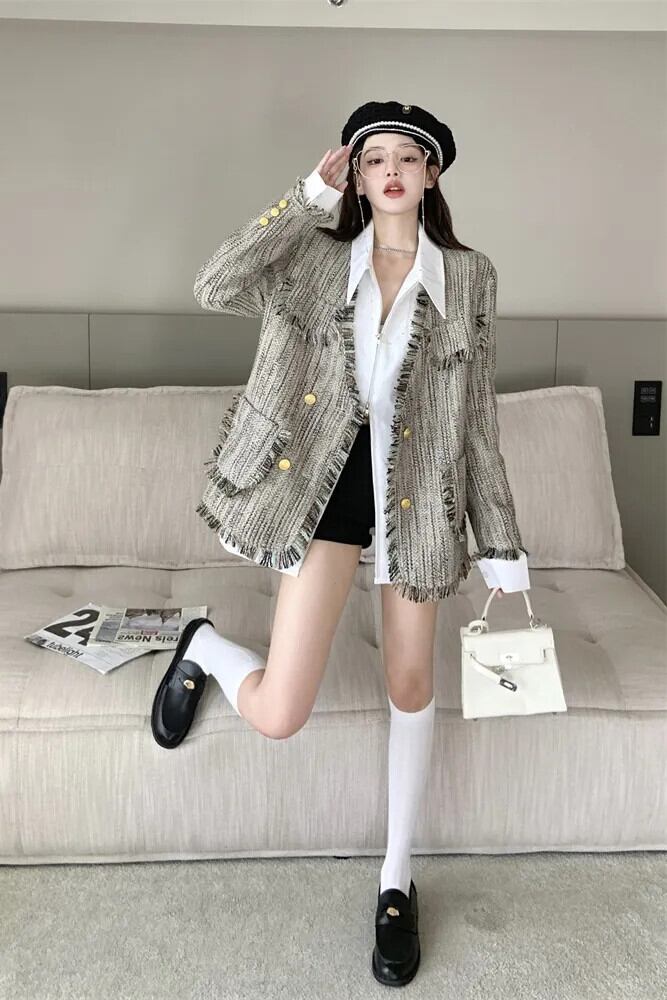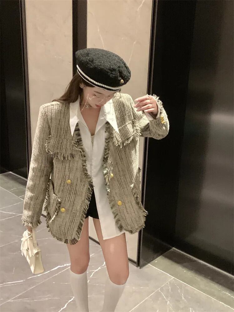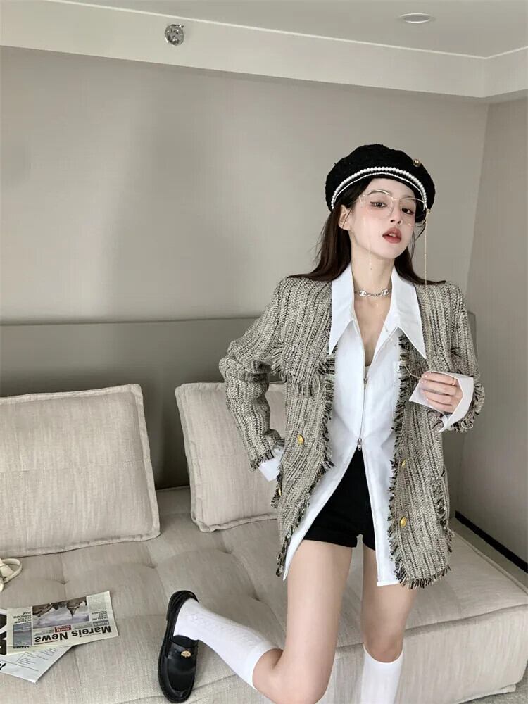オフィスレディ通勤スーツ春と秋長袖 V ネックコートポロカラーシャツトップ 2 点セット ロング スプリング 春物 オータム 秋物 Vネック 会社 学校 通勤や通学にも