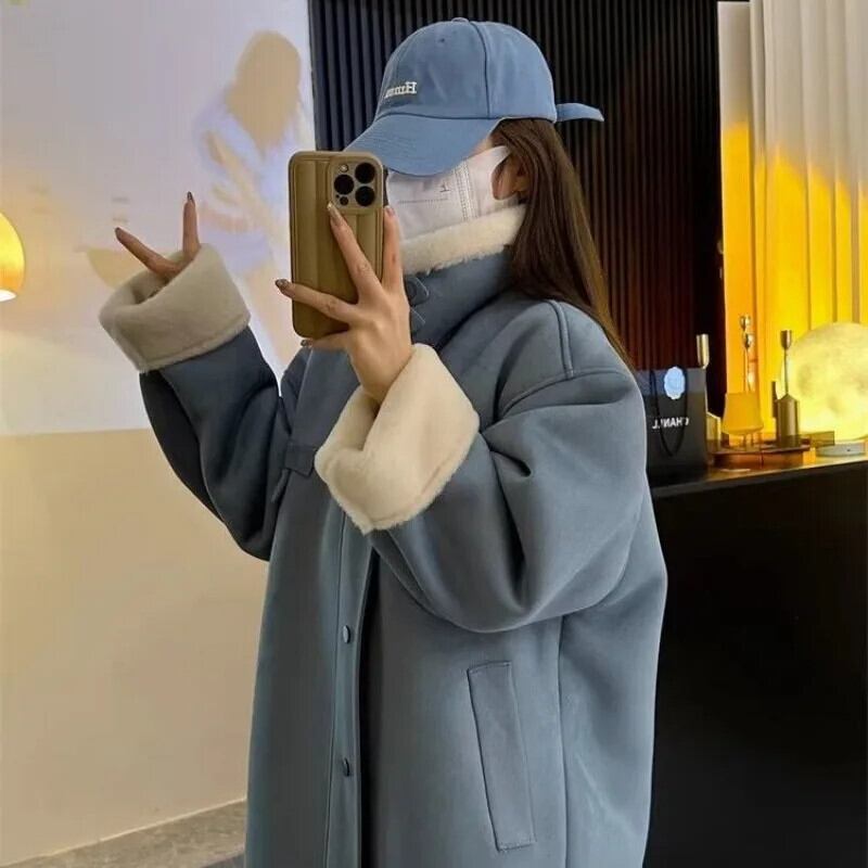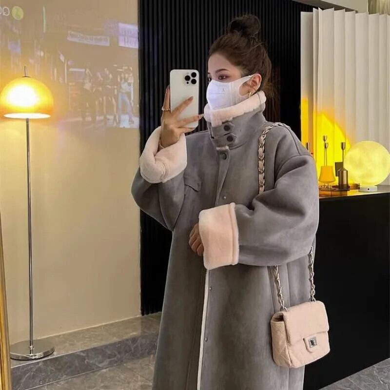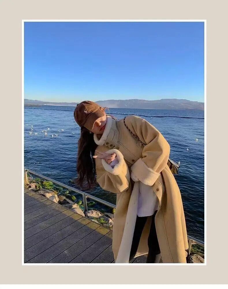 ホットガールロングラムフリーススエードコート秋/冬肥厚毛皮ワンピース模造毛皮環境保護コート スウェード オータム 秋物 ウィンター 冬物
