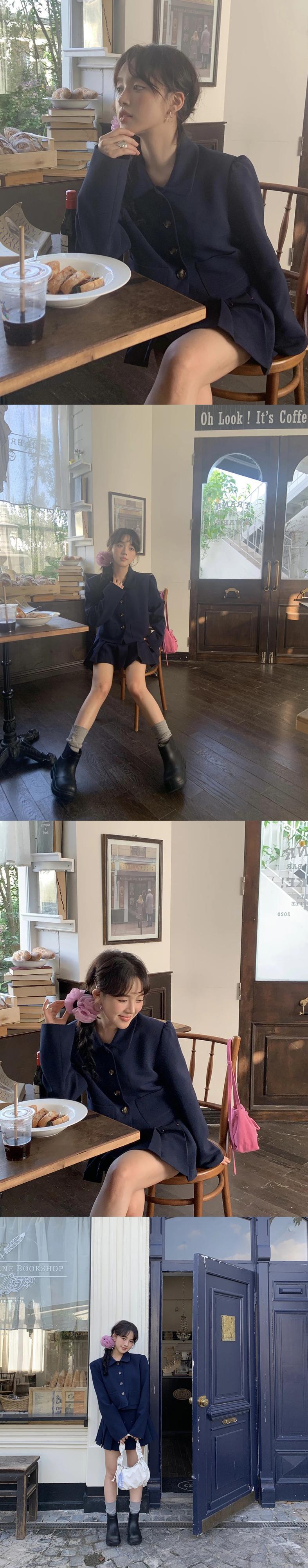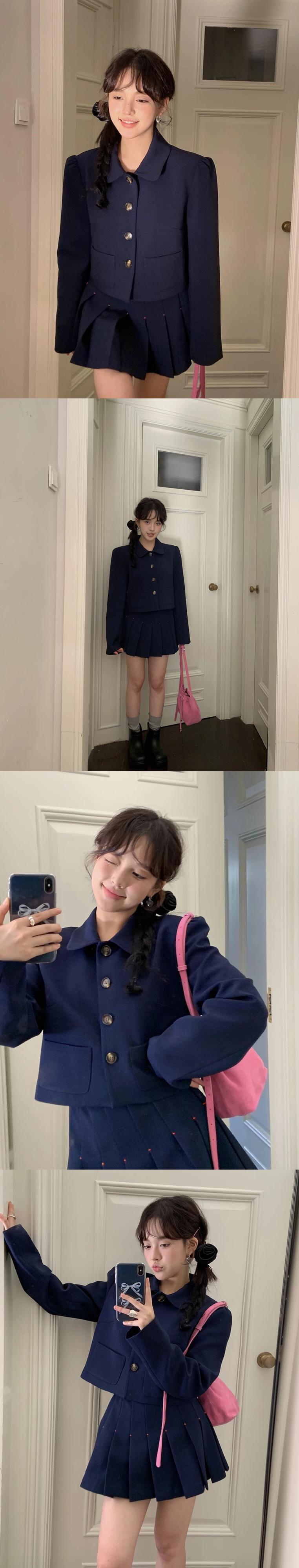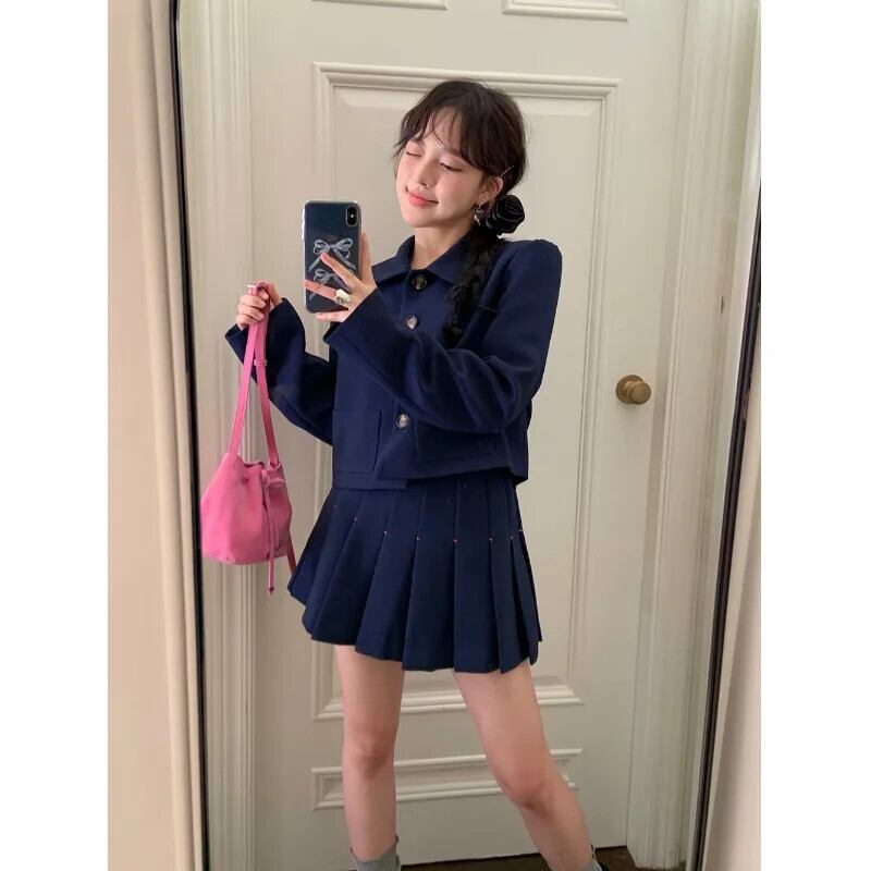 アメリカンホットガールスーツ秋ポロカラーコートウエスト A ラインプリーツミニスカート 2 点セット オータム 秋物 Aライン