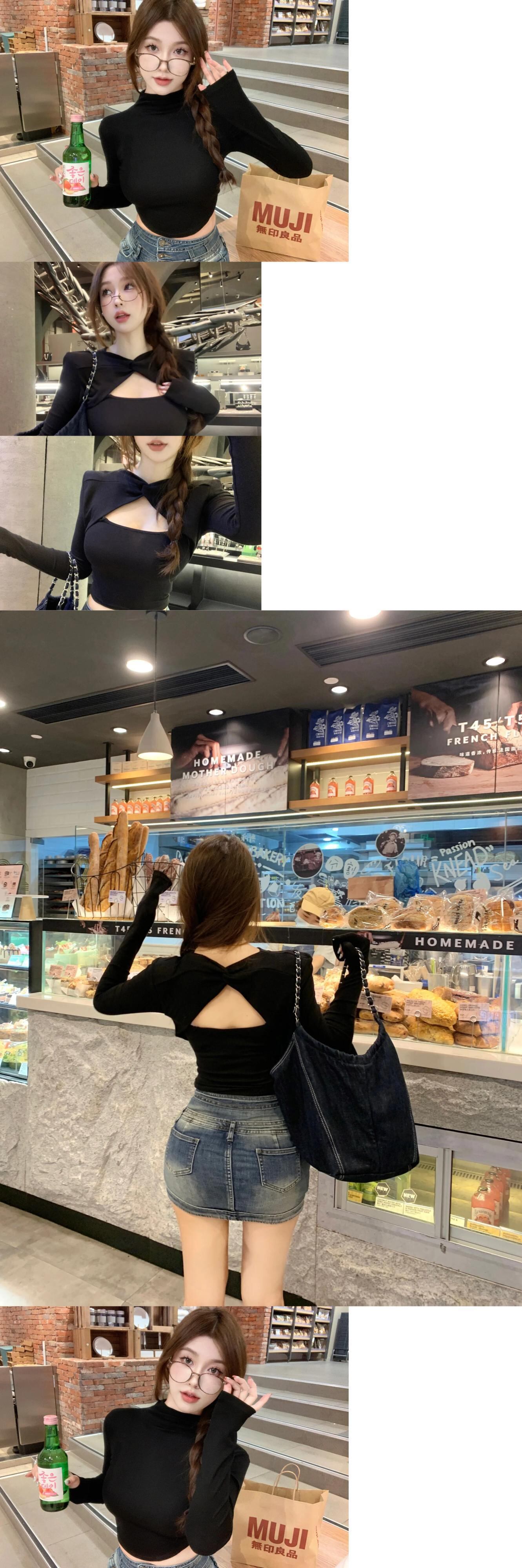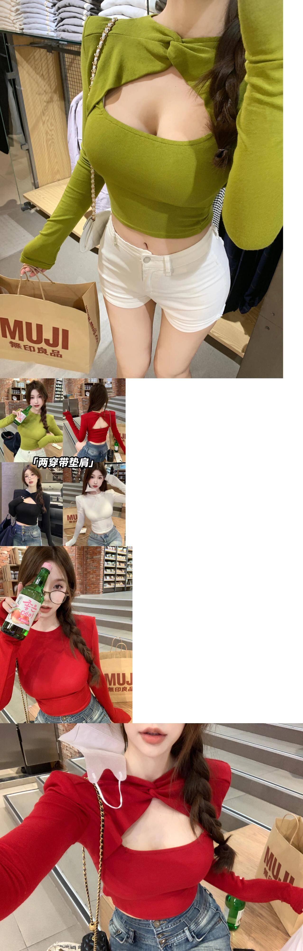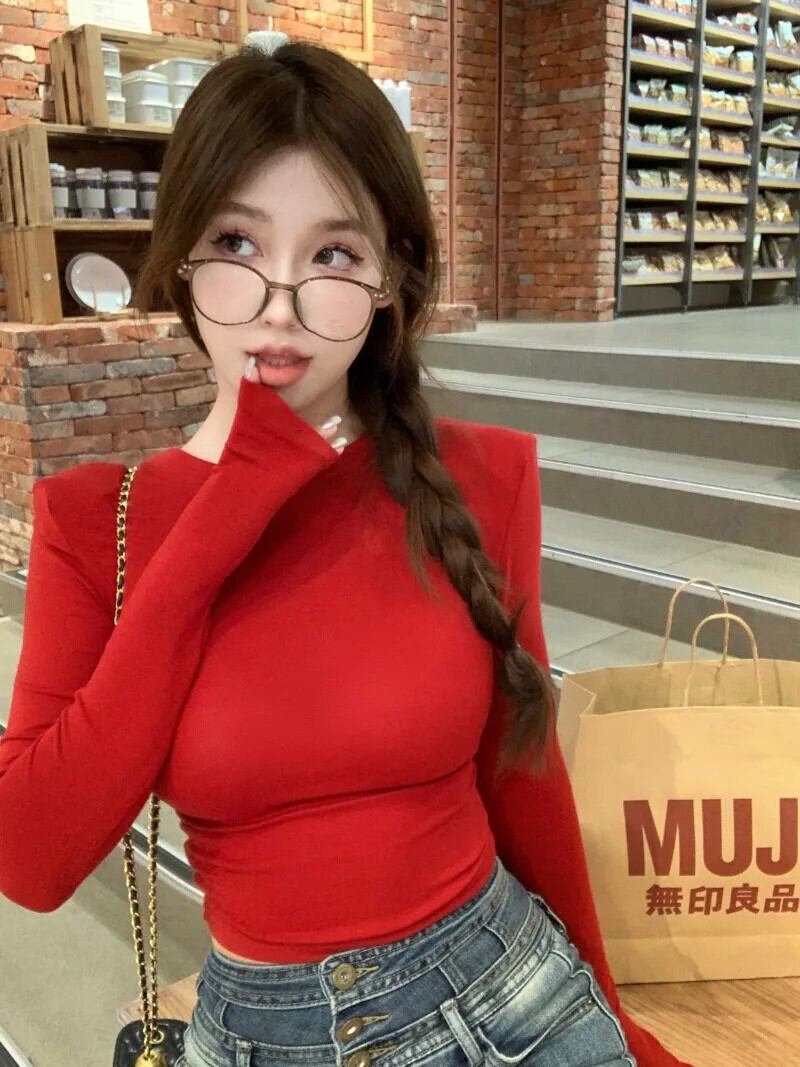 秋 Tシャツ スパイシーガール カシミア ソリッド ラウンドネック 長袖 Tシャツ タイト 底 トップ ロング オータム 秋物 Oネック ソリッドカラー