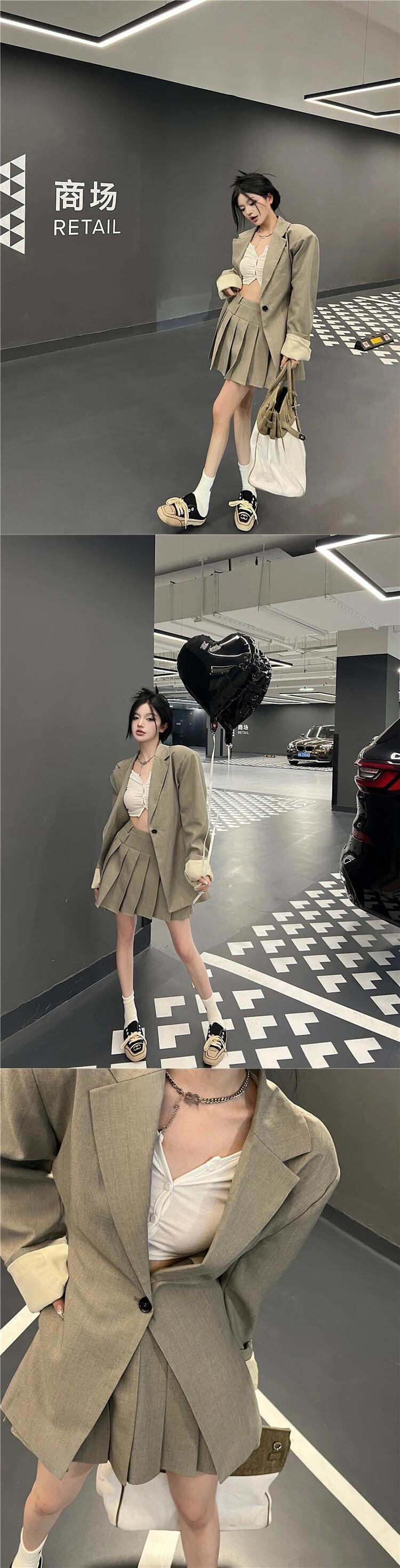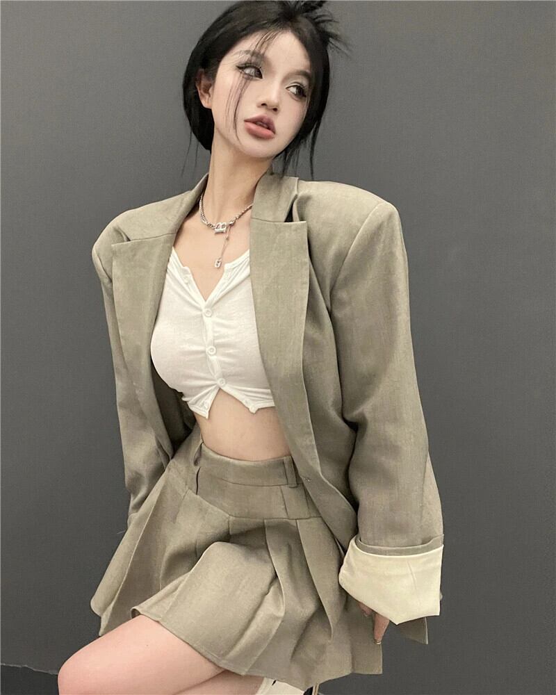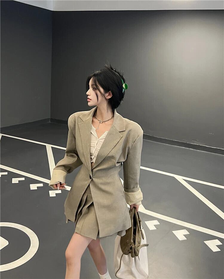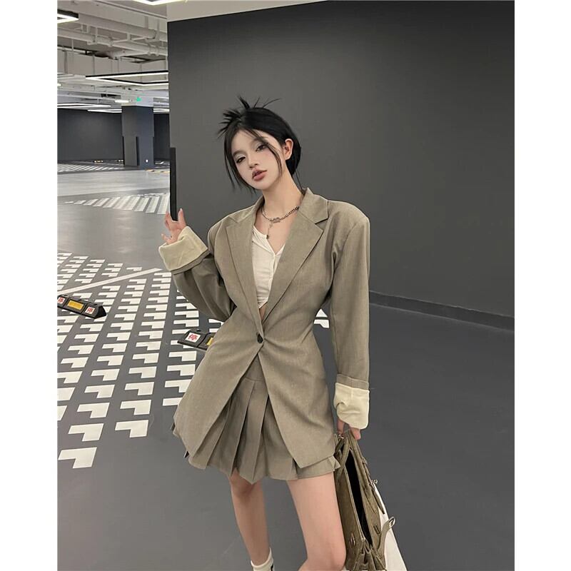 スイートホットガールスーツレディース秋長袖コートウエストプリーツミニスカートツーピースセット ロング 大人ガーリー スウィート キュート カジュアル オータム 秋物