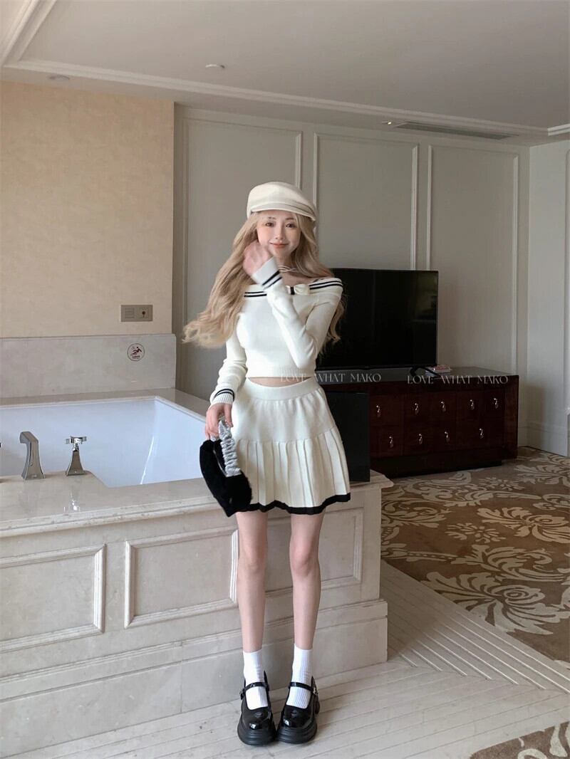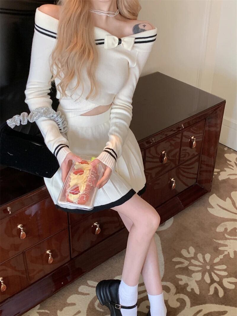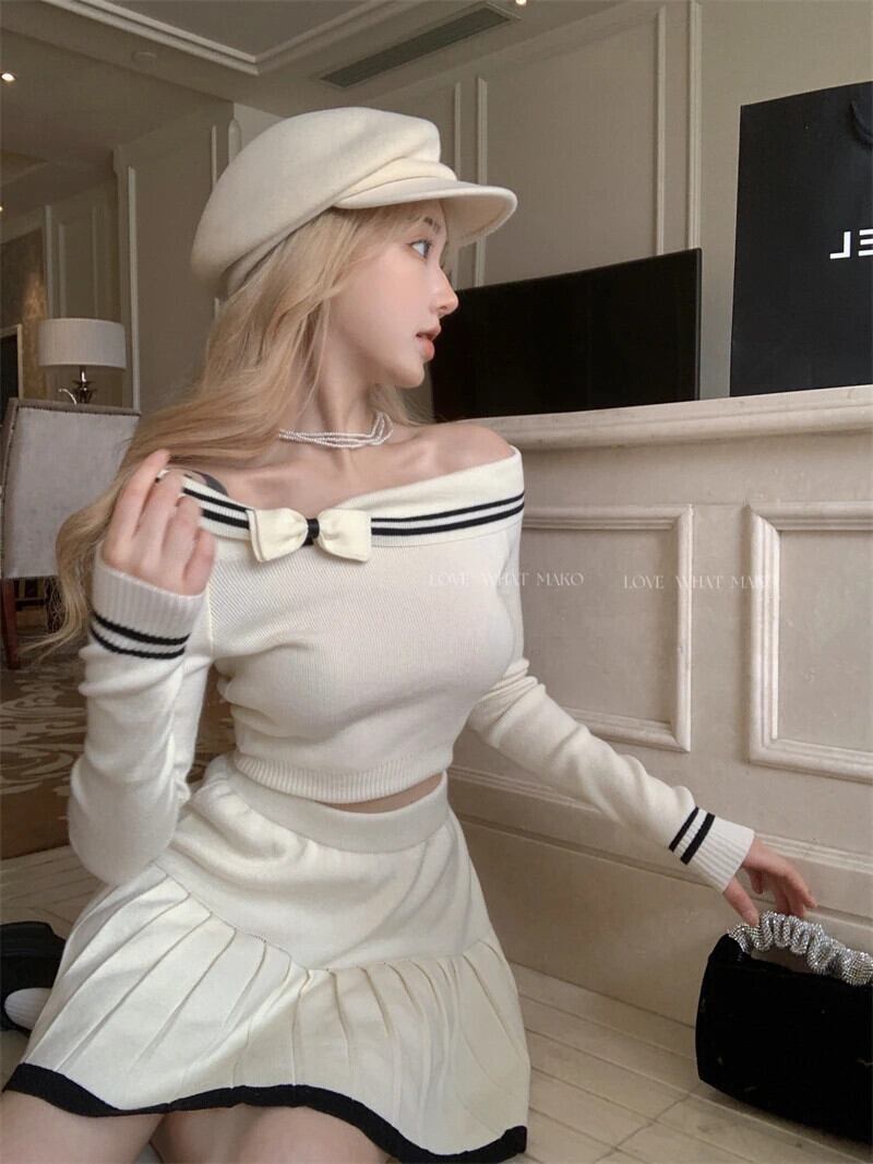 Sweet Girl スーツ レディース 秋 長袖 オフショルダー スリム ニット ミニスカート 2点セット ロング 大人ガーリー スウィート キュート カジュアル オータム 秋物
