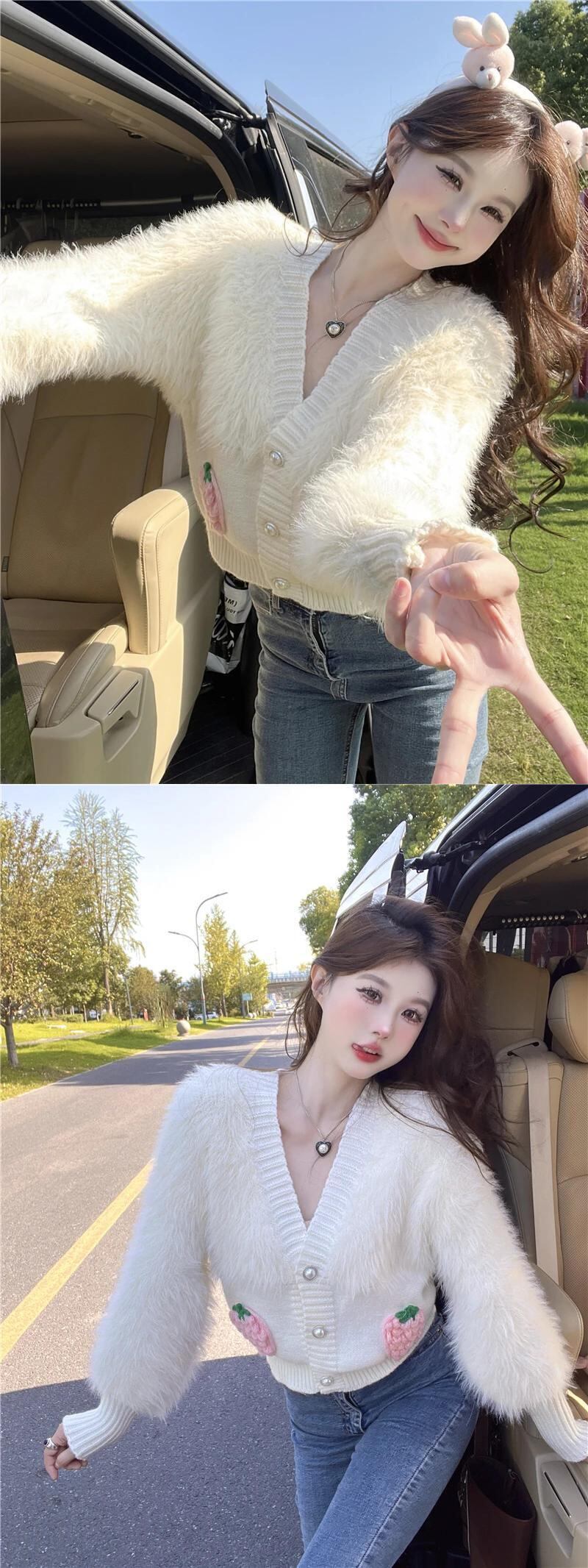 スタイル純粋セクシー V ネックパッチワークルーズセーター秋シングルブレスト長袖肥厚ショートカーディガン ロング オータム 秋物 Vネック ピュア