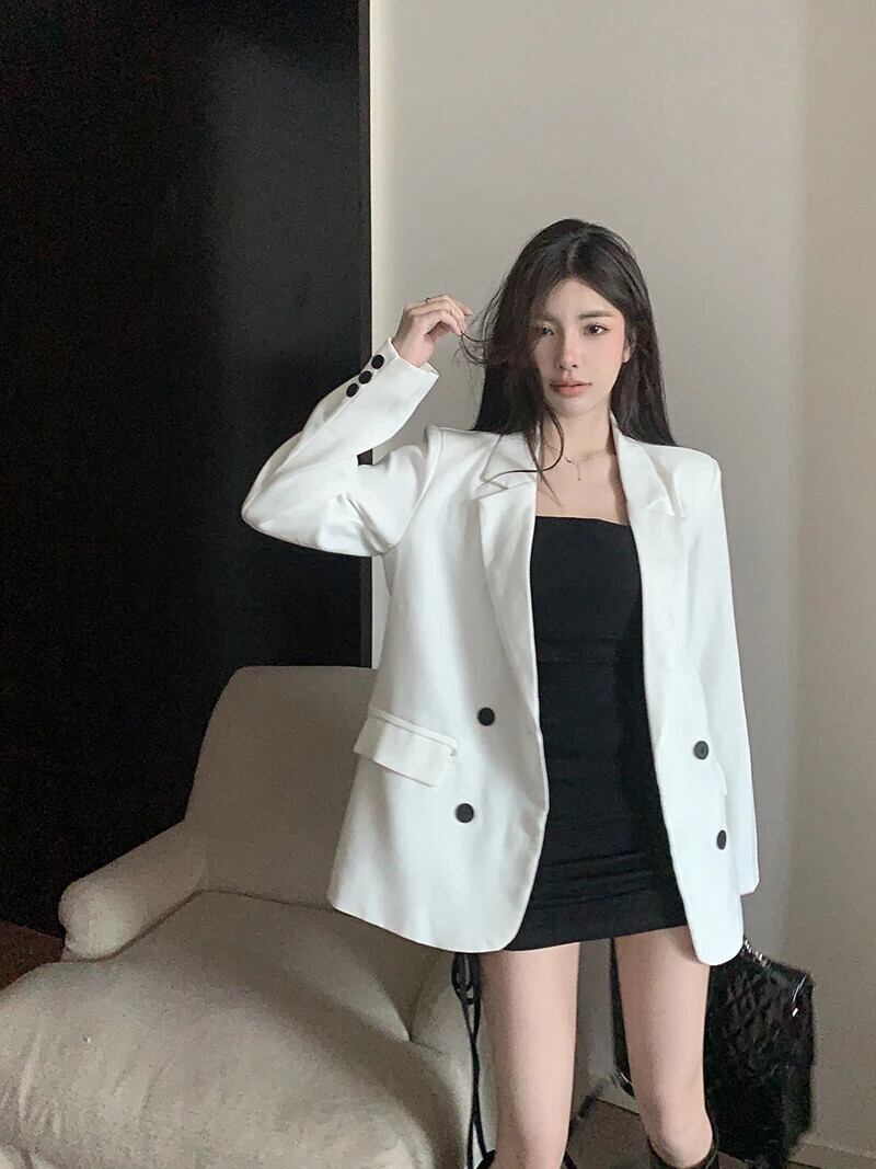 甘いホットガールルーズスーツジャケット秋白プロフェッショナルダブルブレストカーディガントップ ホワイト 大人ガーリー スウィート キュート カジュアル オータム 秋物