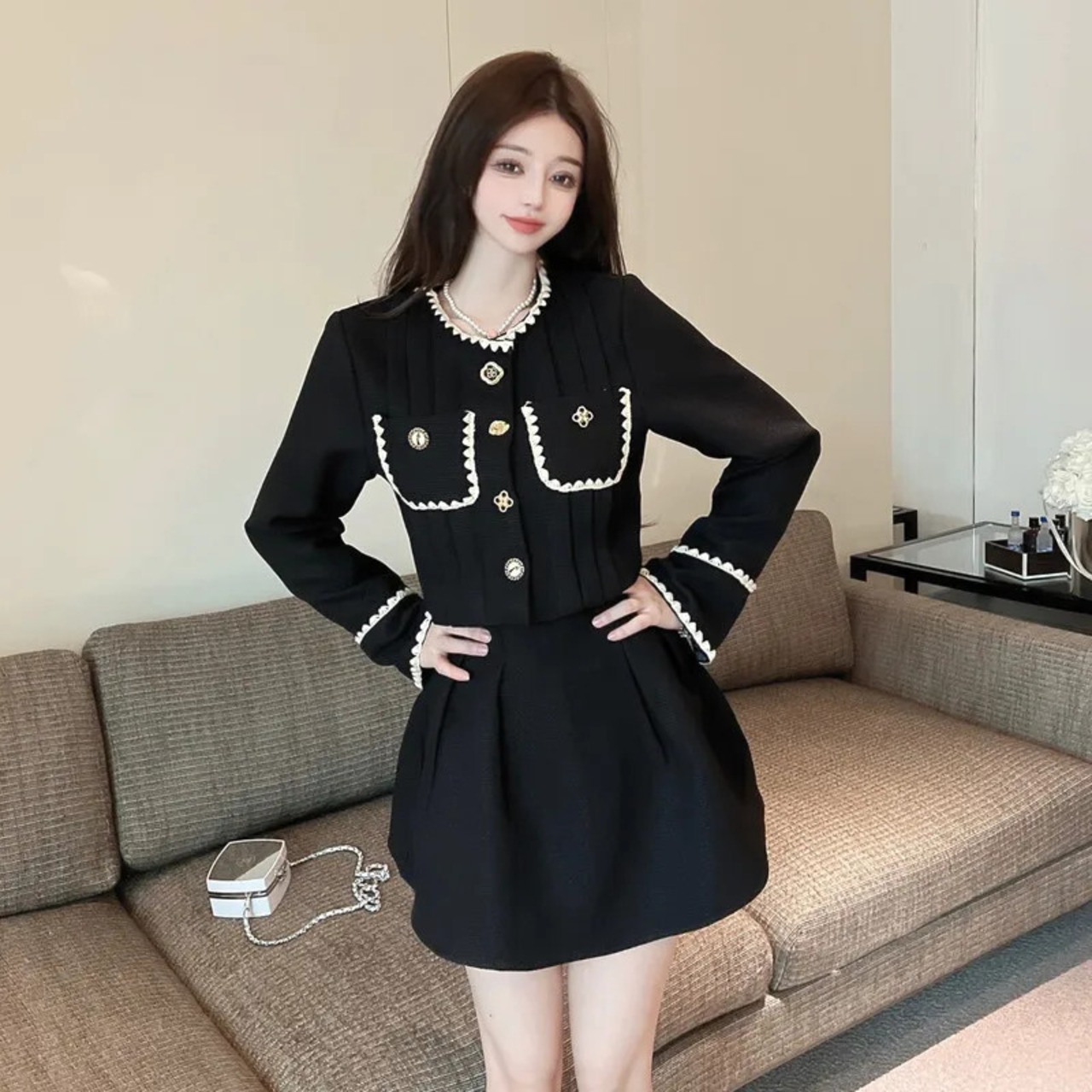 甘いホットガールスーツ冬 O ネック長袖コートウエスト A ラインショートスカート 2 点セット ロング 大人ガーリー スウィート キュート カジュアル ウィンター 冬物 Oネック Aライン