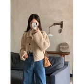 Sweet Girl ラムショートコート レディース 秋/冬 豪華ターンダウンカラー シングルブレスト ルーズジャケット 大人ガーリー スウィート キュート カジュアル オータム 秋物 ウィンター 冬物