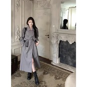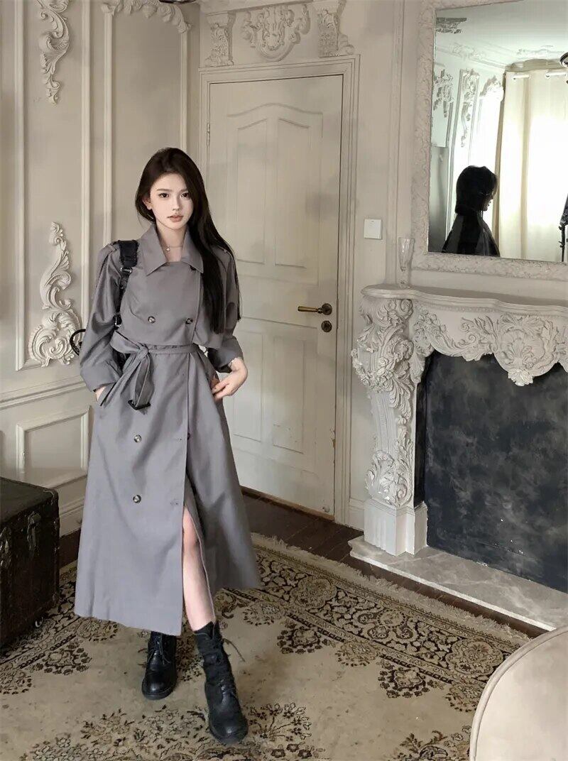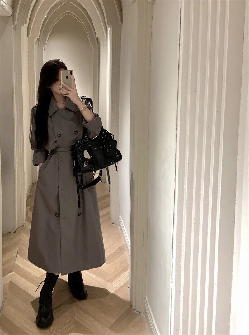 甘いホットガール英国スタイルルーズフィット膝丈トレンチコート秋長袖レースアップコート ロング 大人ガーリー スウィート キュート カジュアル オータム 秋物
