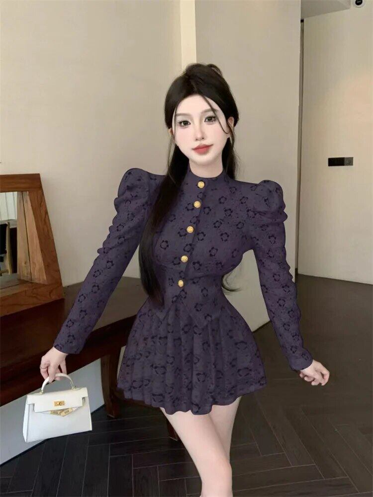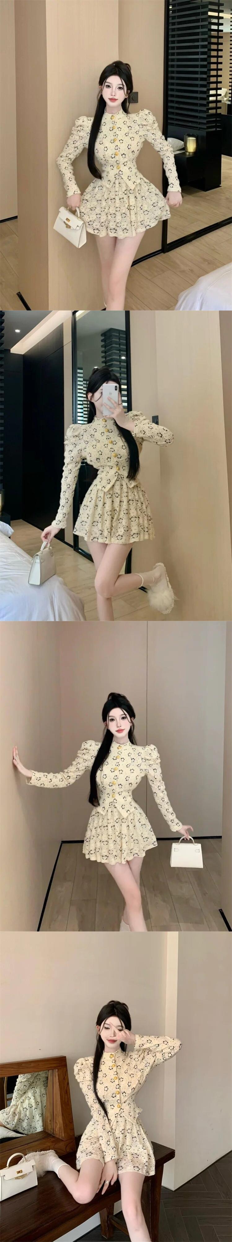 スイートガールスーツ レディース 秋冬 ハーフネック スリムフィット レース 長袖 カーディガン ミニスカート ツーピースセット ロング 大人ガーリー スウィート キュート カジュアル オータム 秋物 ウィンター 冬物