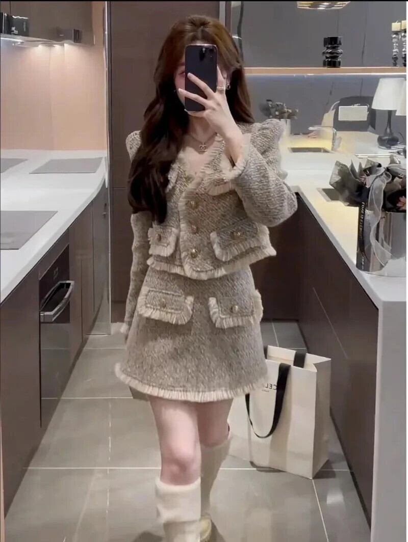 Sweet Girl スーツ レディース 秋冬 V ネック ショート ジャケット 多用途 電話 ミニスカート 2 点セット 大人ガーリー スウィート キュート カジュアル オータム 秋物 ウィンター 冬物 Vネック