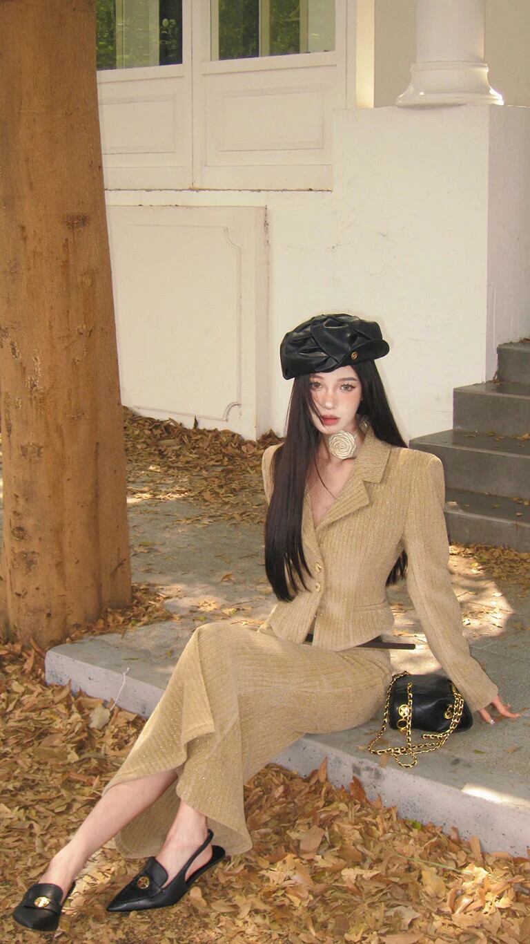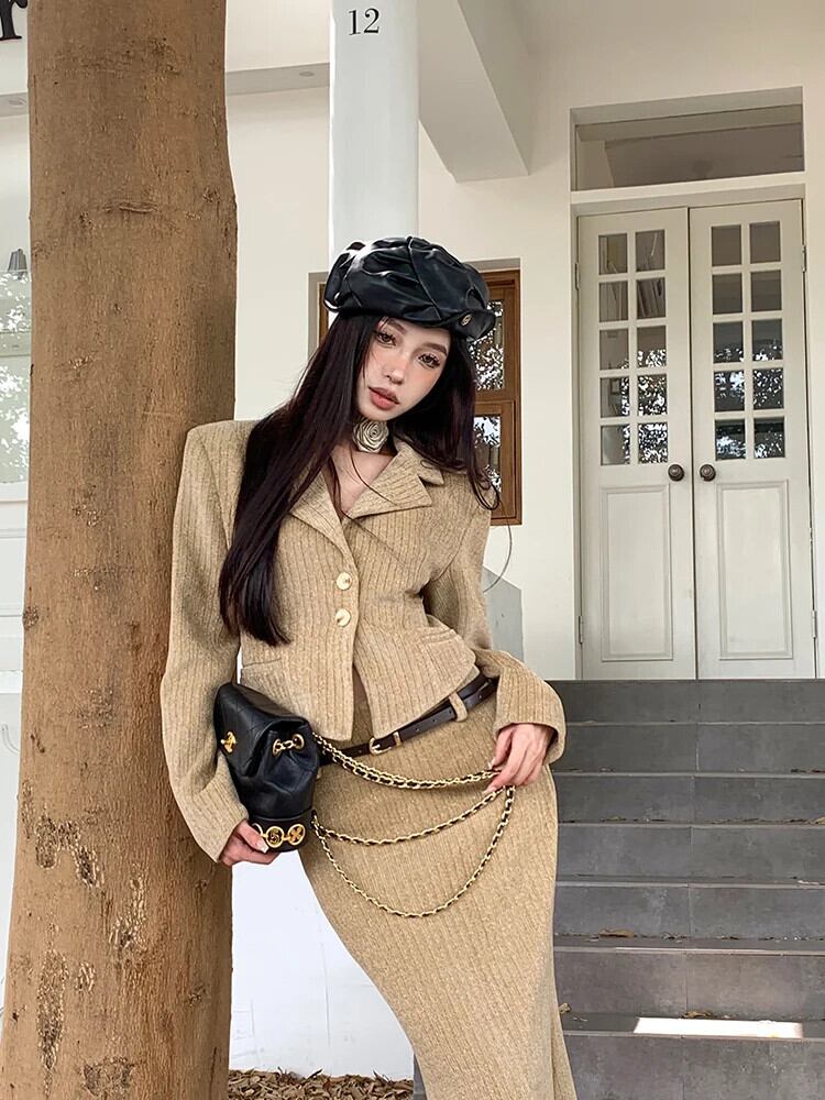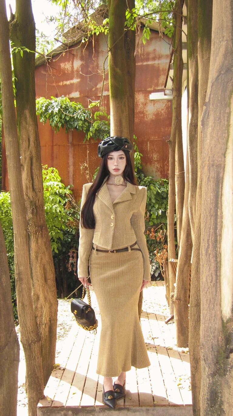オフィスレディ スーツ レディース 秋 長袖 ストライプ コート ラップヒップ ロングスカート 2点セット オータム 秋物 会社 学校 通勤や通学にも