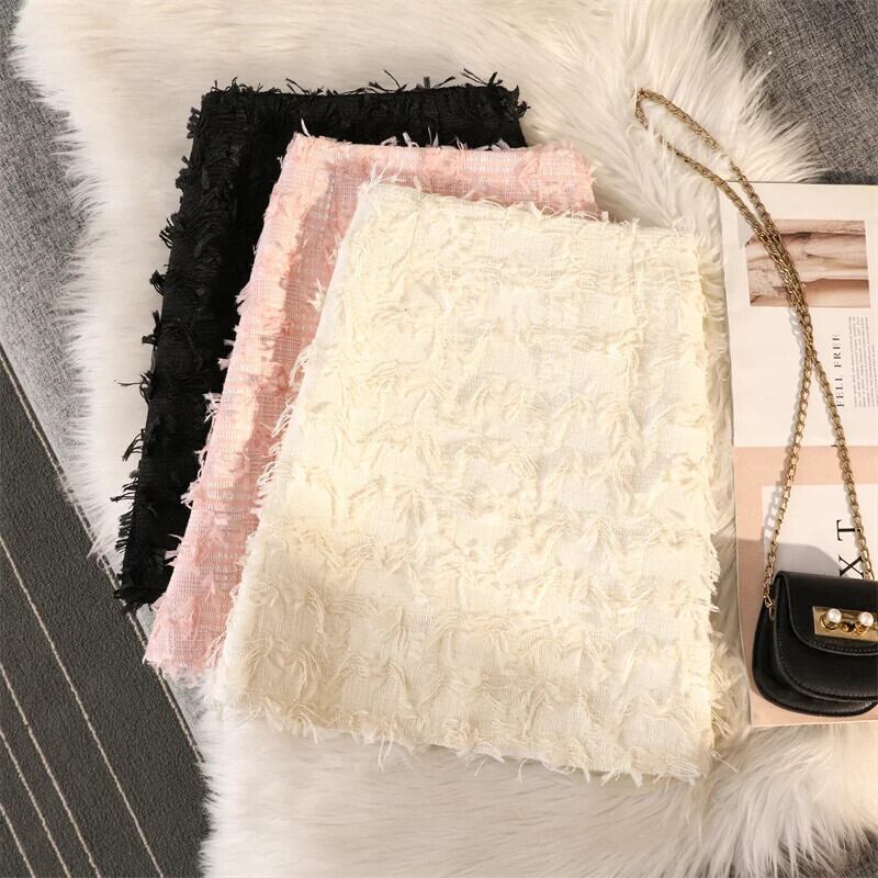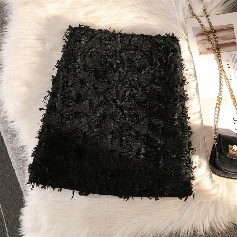 Sweet Girl 光沢あるショートスカート秋/冬フリーススパンコール厚いツイードラップヒップスカート 大人ガーリー スウィート キュート カジュアル オータム 秋物 ウィンター 冬物