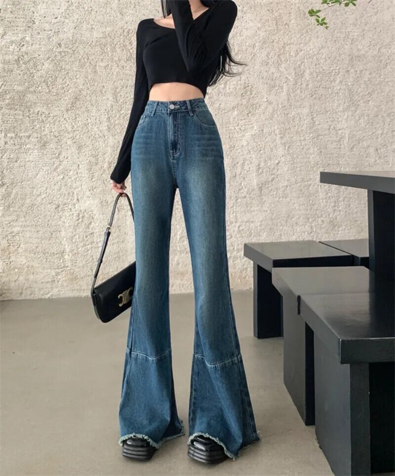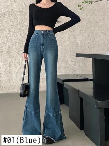 甘いホットガールマイクロフレアジーンズ秋ウエストフレアワイドレッグパンツストリート生き抜く レッド 大人ガーリー スウィート キュート カジュアル オータム 秋物 ワイドパンツ