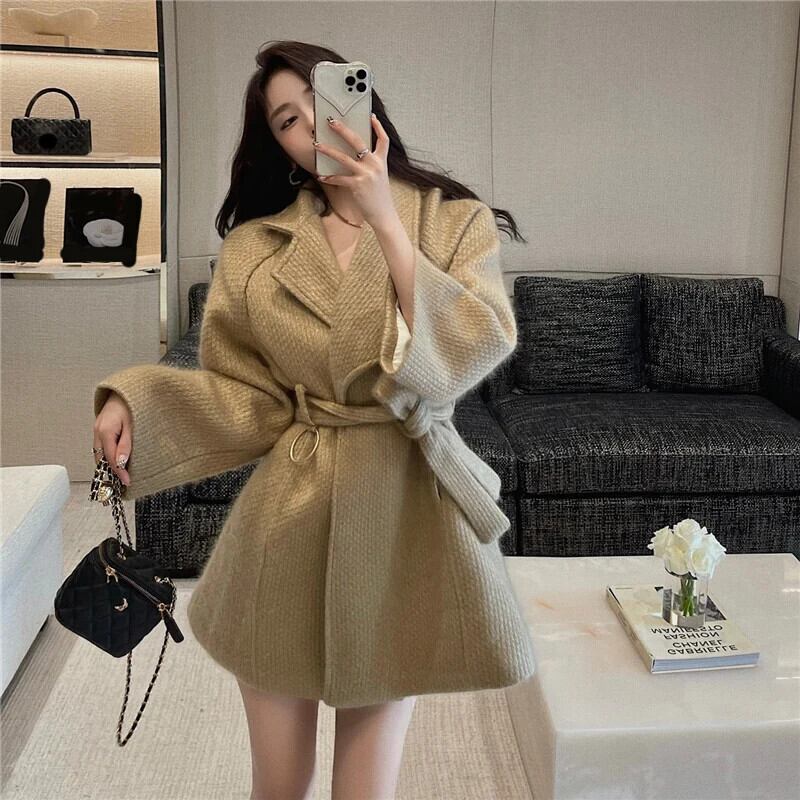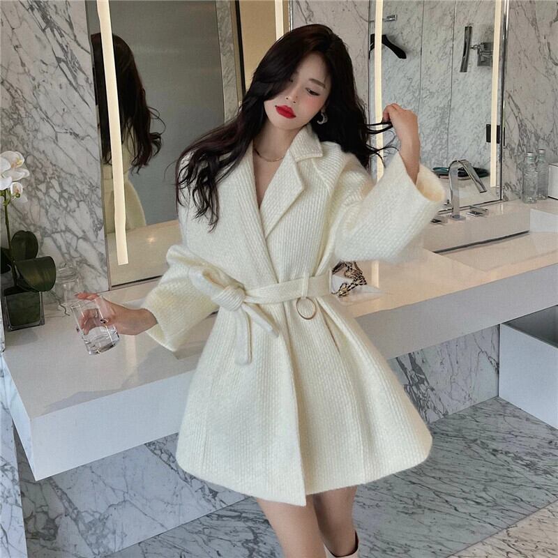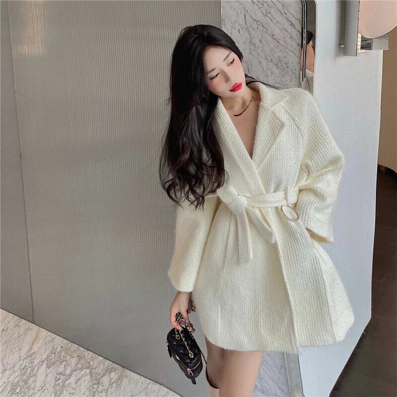 甘いホットガールターンダウン襟イミテーションミンクミッドレングスレースアップコート冬ウールクリップコットンカーディガン 大人ガーリー スウィート キュート カジュアル ウィンター 冬物