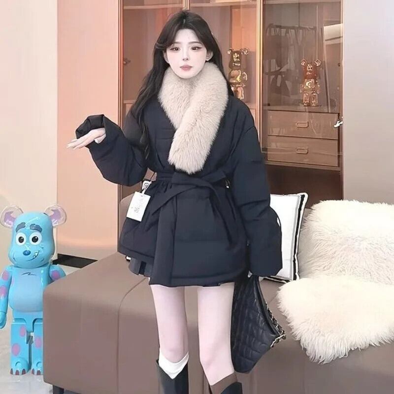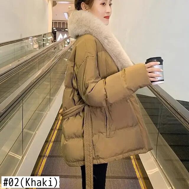 甘いホットガール毛皮襟ホワイトダックダウンジャケット冬スタイルレースアップコットンジャケット 大人ガーリー スウィート キュート カジュアル ウィンター 冬物
