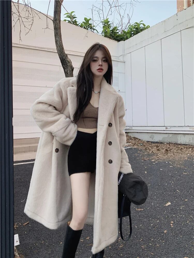スタイル甘いホットガールファーミッドレングスコート秋/冬ルーズロングコットンジャケット 大人ガーリー スウィート キュート カジュアル オータム 秋物 ウィンター 冬物