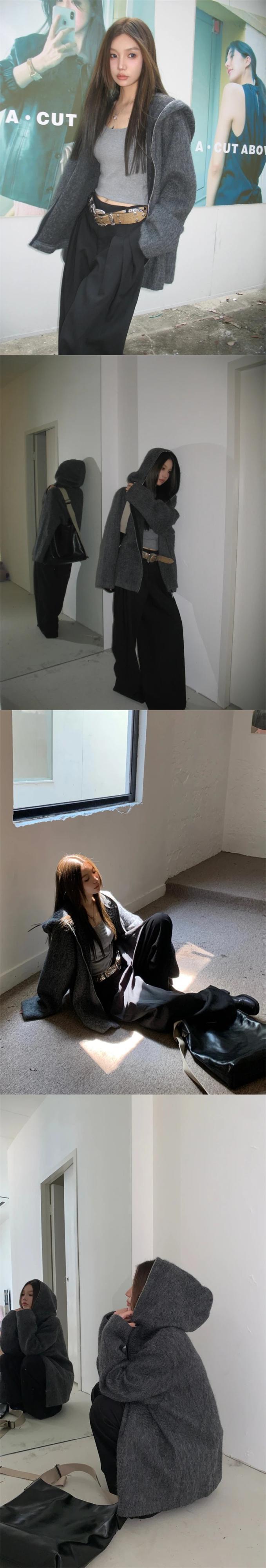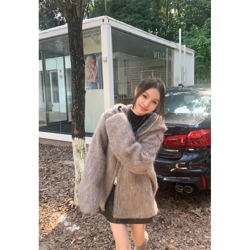 Sweet Girl フード付きジッパージャケット秋多彩長袖ルーズウールジャケット ロング レッド 大人ガーリー スウィート キュート カジュアル オータム 秋物