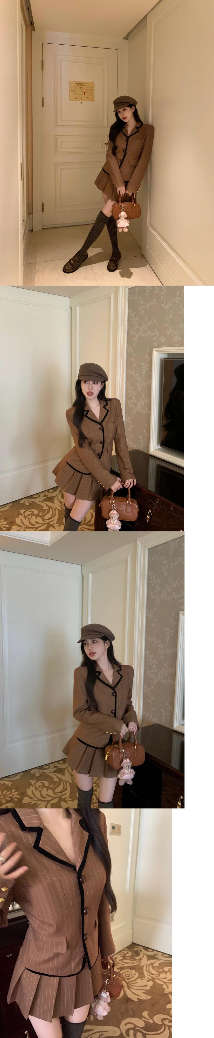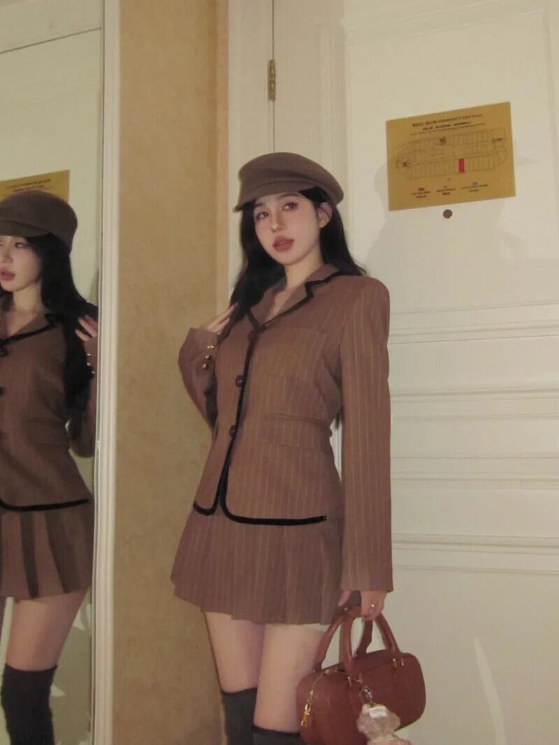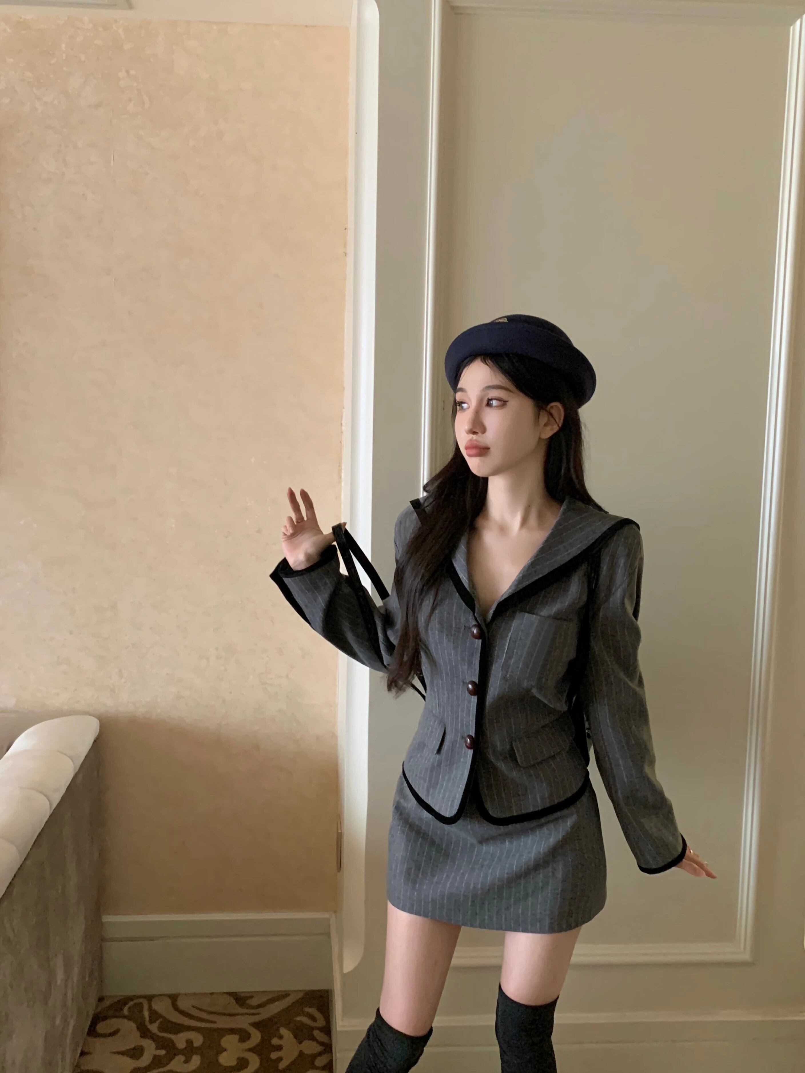 Sweet Girl プレッピー スタイル スーツ レディース 秋 セーラー襟 カーディガン ウエスト A ライン スカート 2 点セット 大人ガーリー スウィート キュート カジュアル オータム 秋物 Aライン