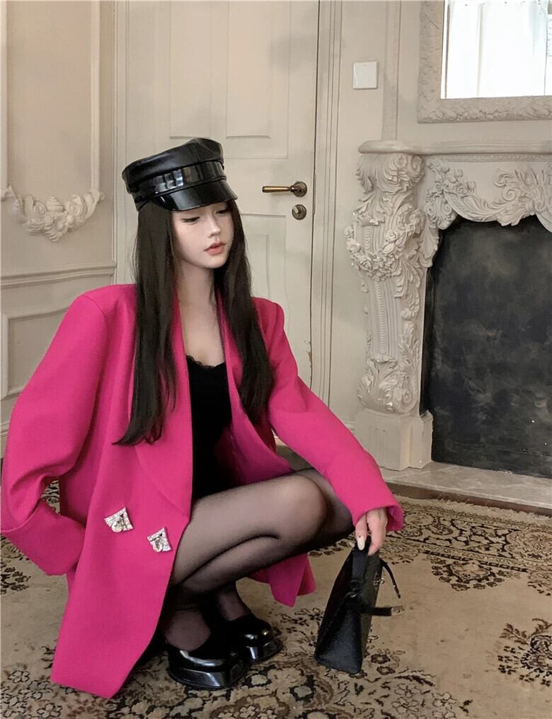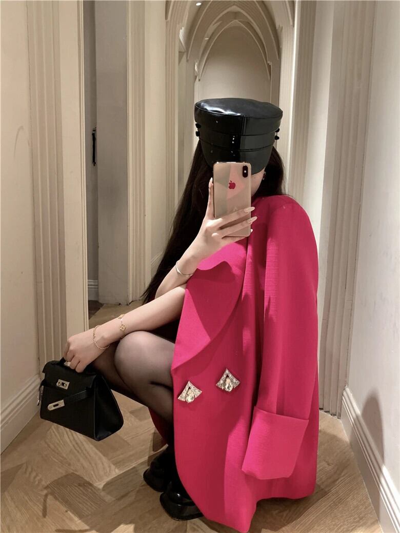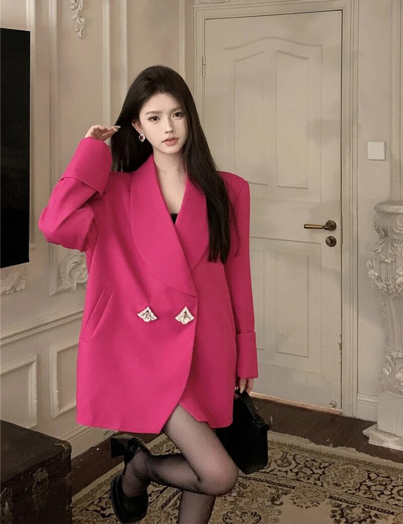 フランスオフィスレディスーツコート秋ルーズミッドレングスターンダウン襟長袖コート ロング オータム 秋物 会社 学校 通勤や通学にも