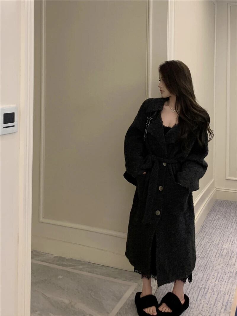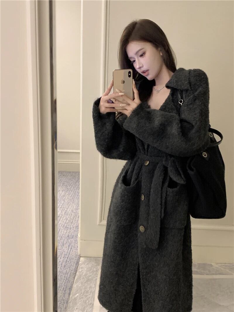 Sweet Hot Girl ニットカーディガン レディース ゆったり 多用途 秋冬 長袖 ターンダウンカラー レースアップジャケット ロング 大人ガーリー スウィート キュート カジュアル オータム 秋物 ウィンター 冬物