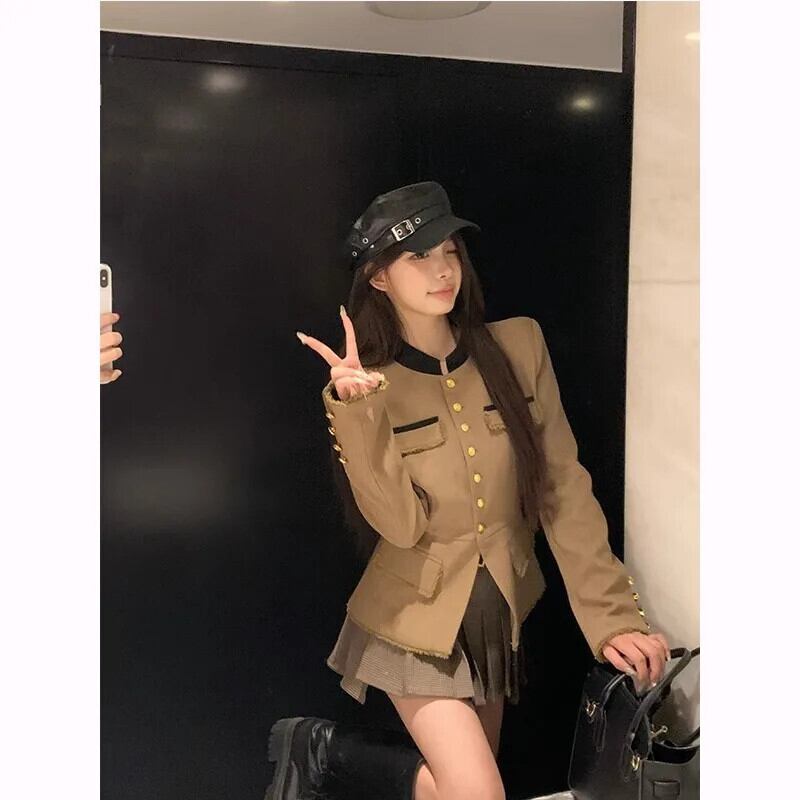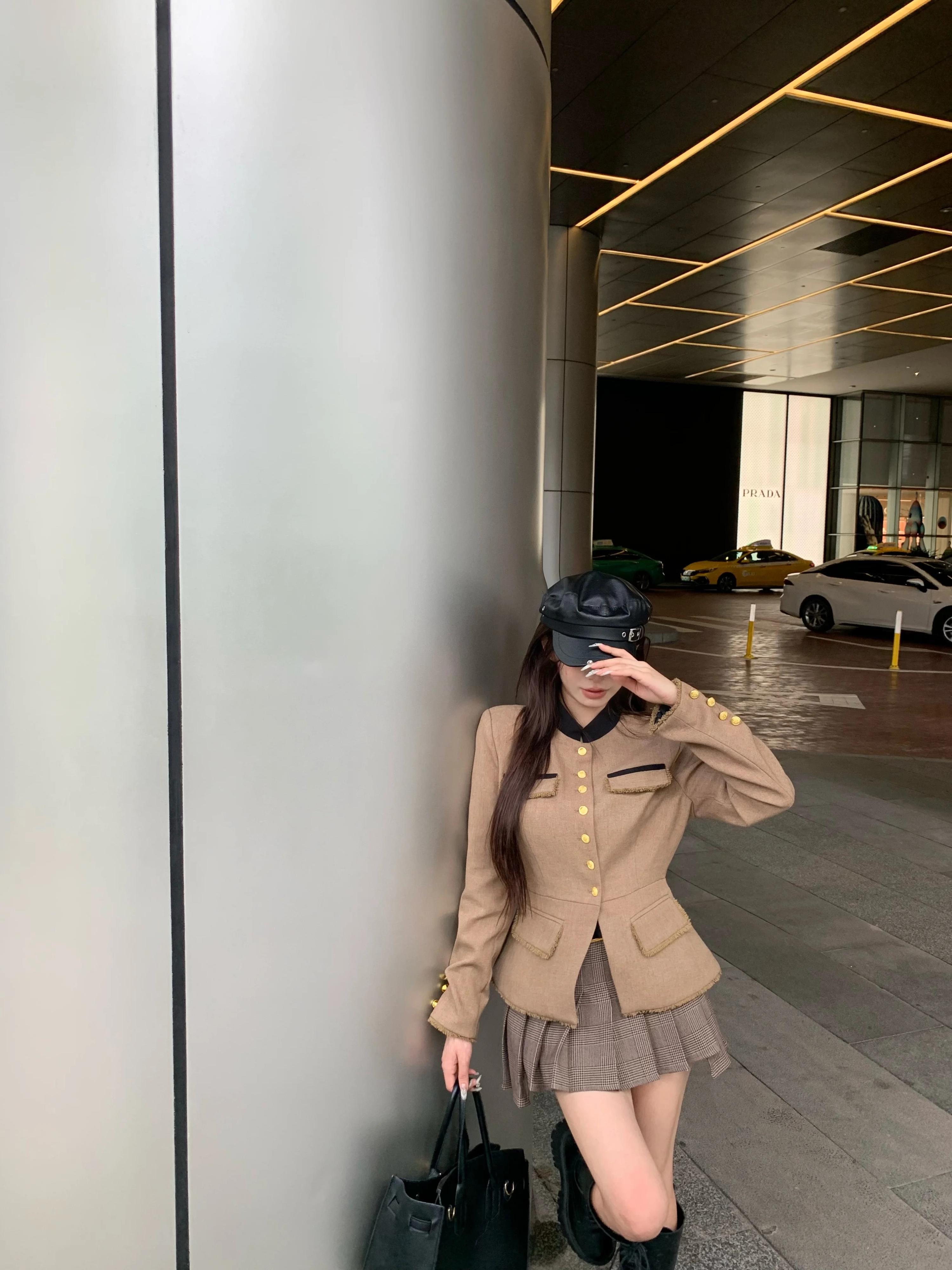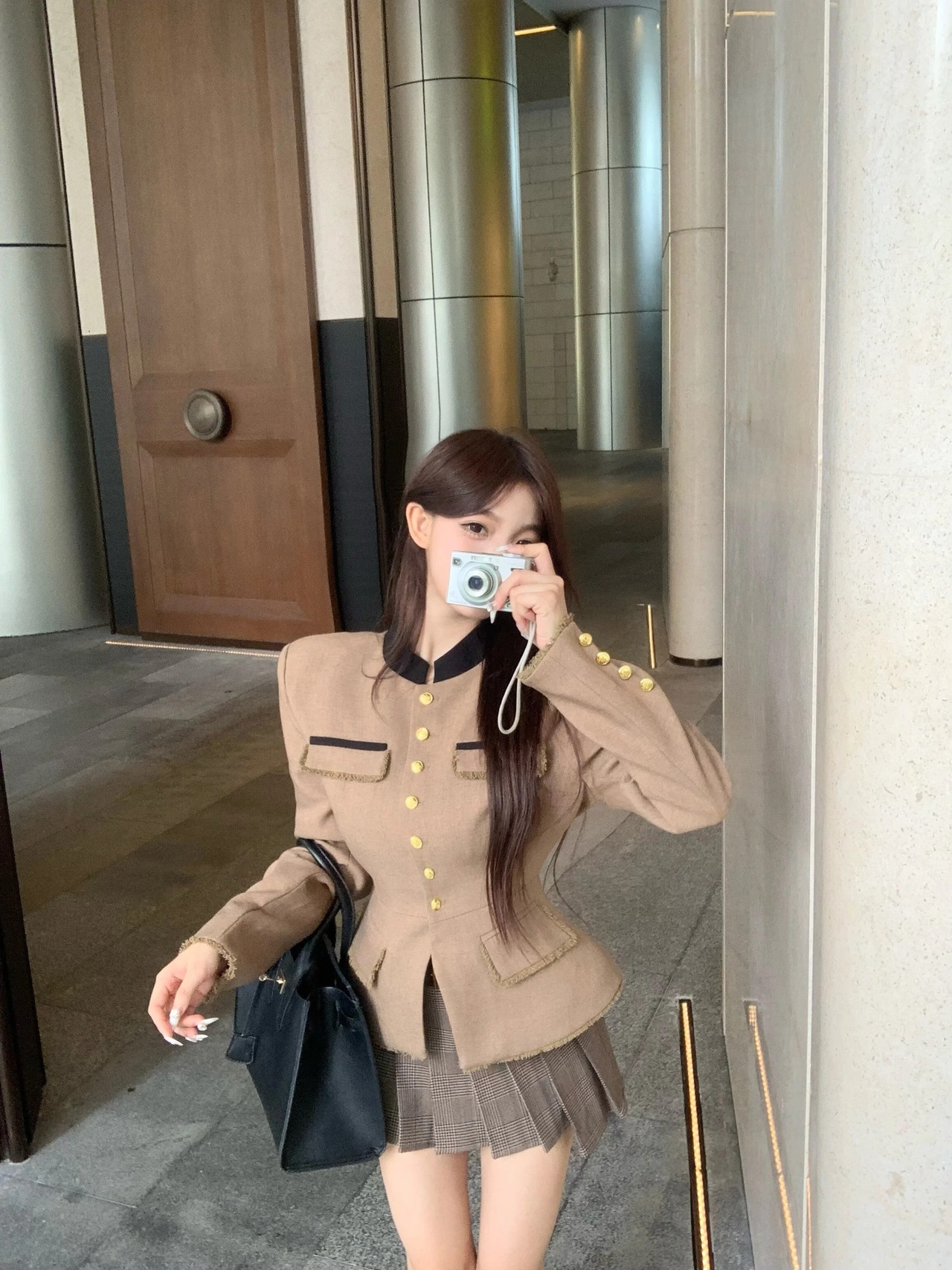 スイートホットガールスタイルスーツ秋スタンドカラーコート A ラインチェック柄ミニスカート 2 点セット 大人ガーリー スウィート キュート カジュアル オータム 秋物 Aライン