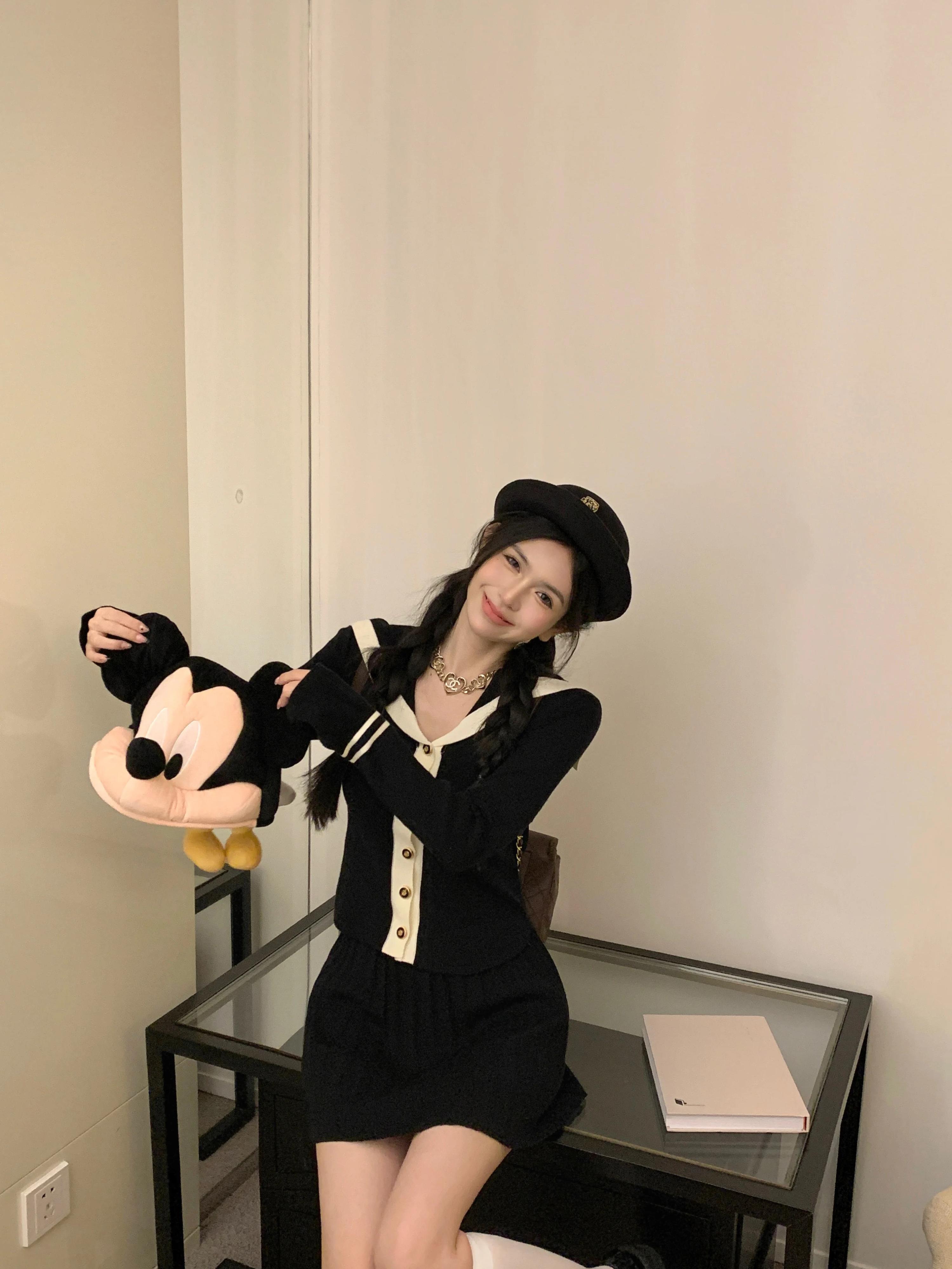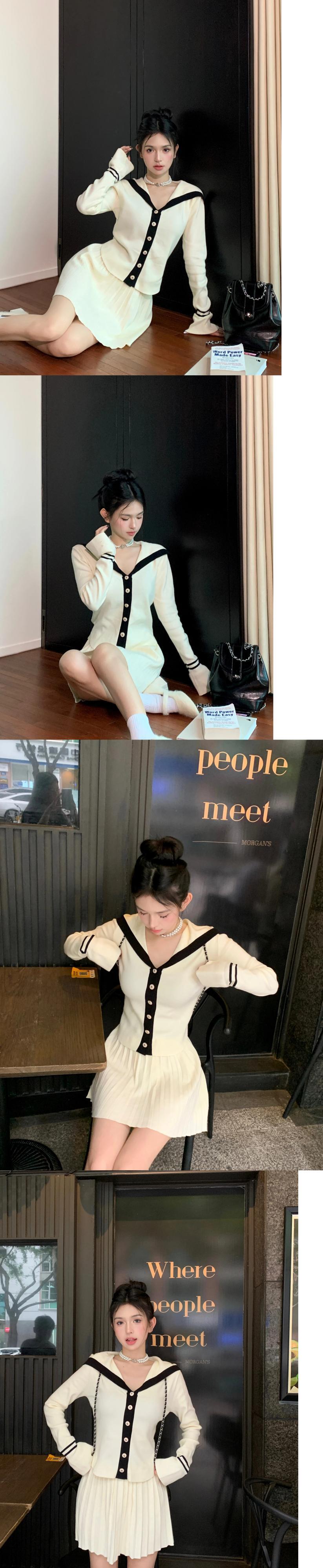 スイートガールスーツ秋スリムセーラー襟長袖トップウエストミニスカート 2 点セット ロング 大人ガーリー スウィート キュート カジュアル オータム 秋物
