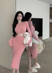 スタイルスイートホットガールスーツ秋長袖トップウエストロングスカートツーピースセット 大人ガーリー スウィート キュート カジュアル オータム 秋物