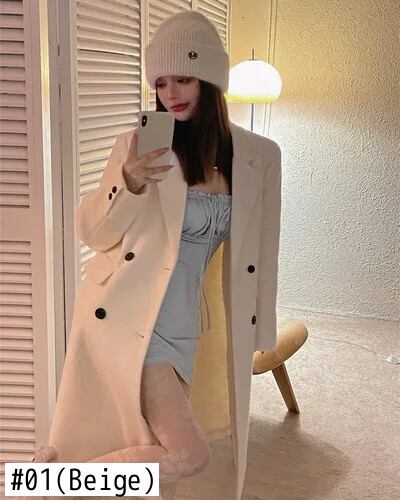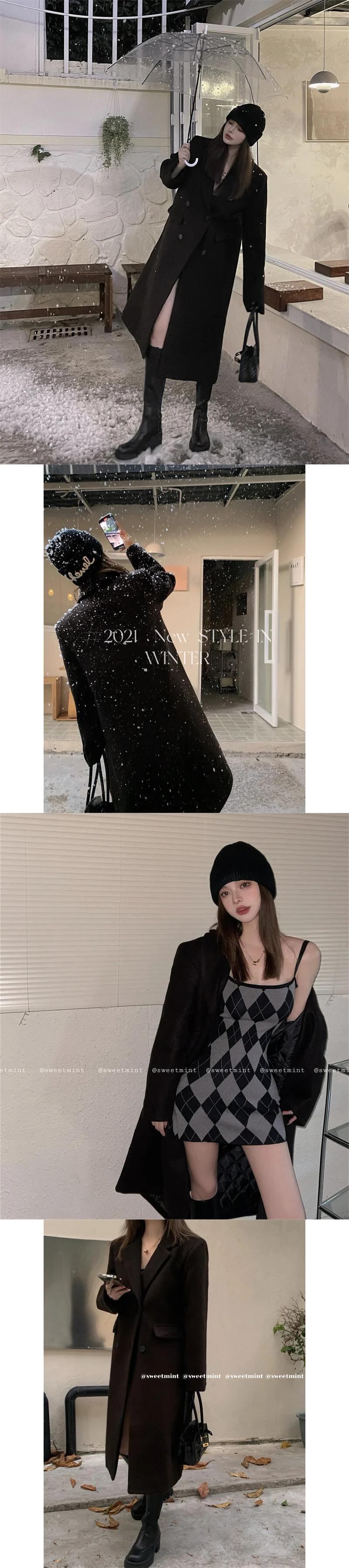 甘いホットガールレトロロングウールジャケット秋と冬ルーズで厚みある綿ダブルブレストコート コットン 大人ガーリー スウィート キュート カジュアル オータム 秋物 ウィンター 冬物