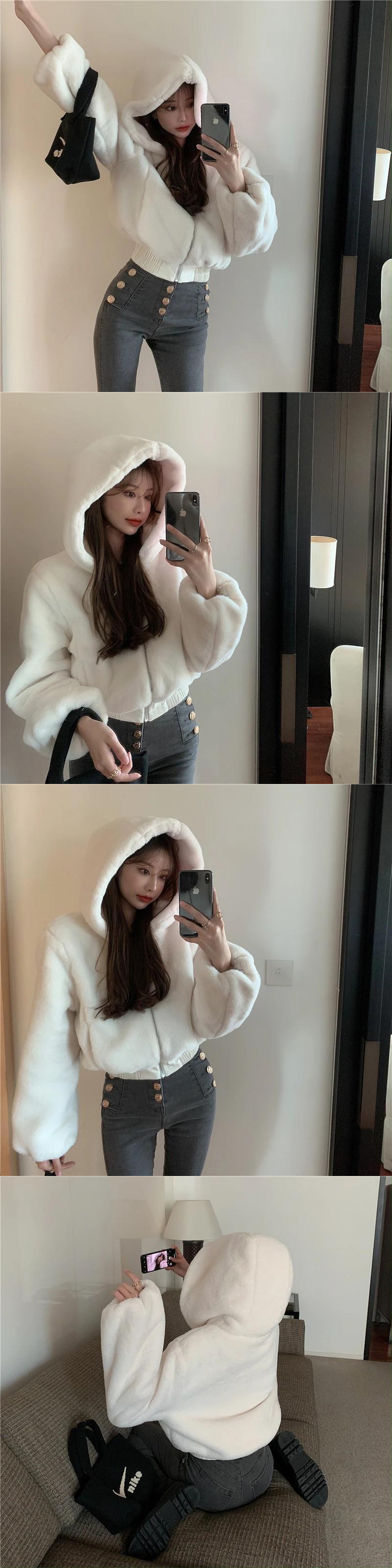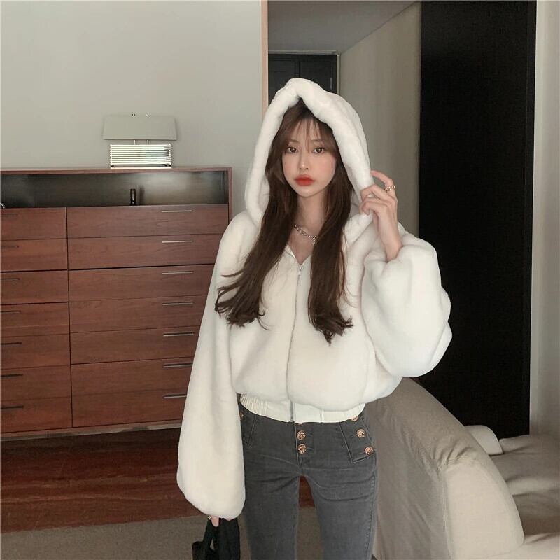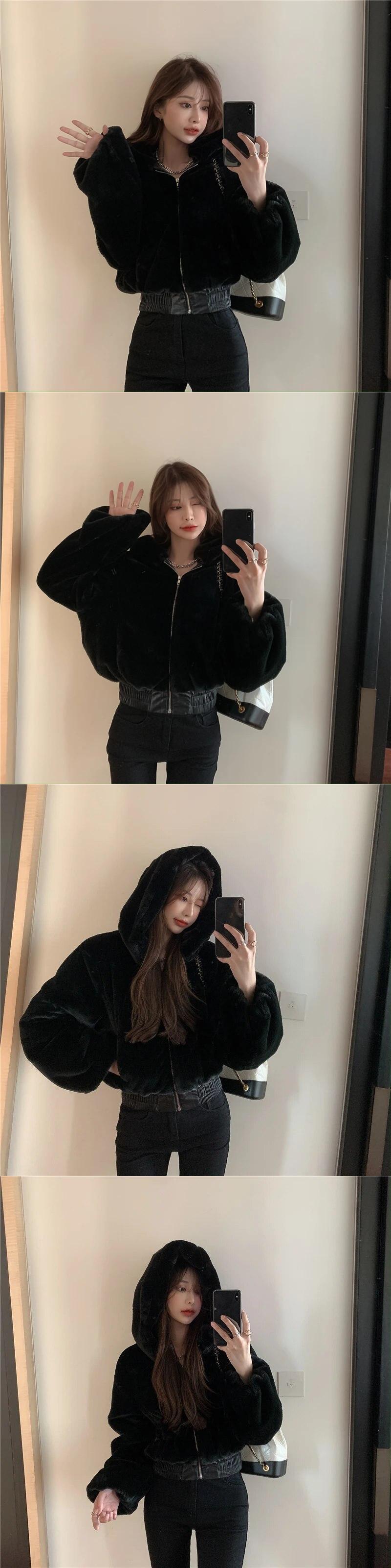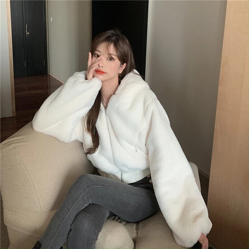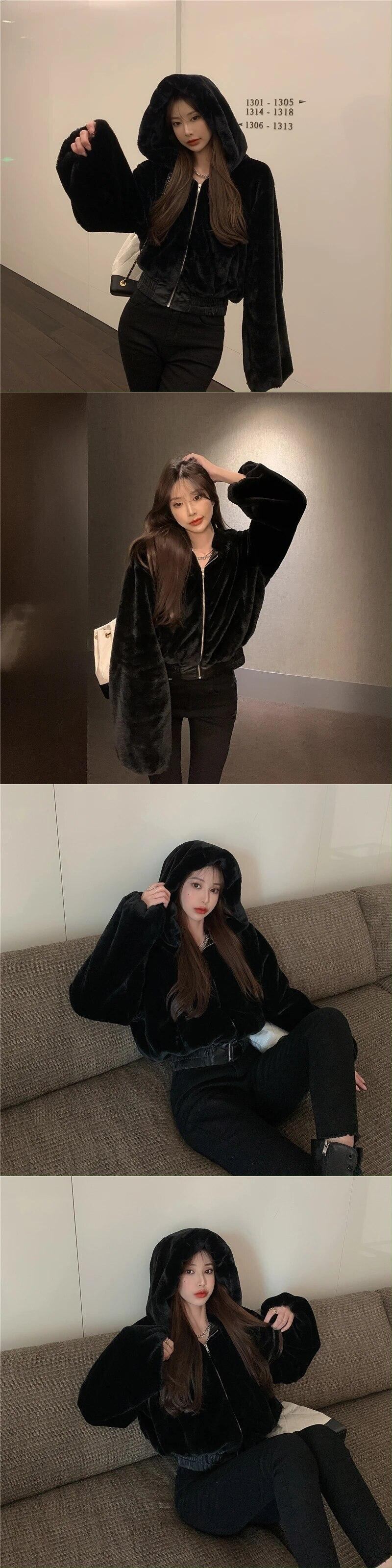 スタイル甘いホットガールイミテーションミンクファー肥厚ショートジャケット秋と冬豪華フード付きスウェットシャツ 大人ガーリー スウィート キュート カジュアル オータム 秋物 ウィンター 冬物