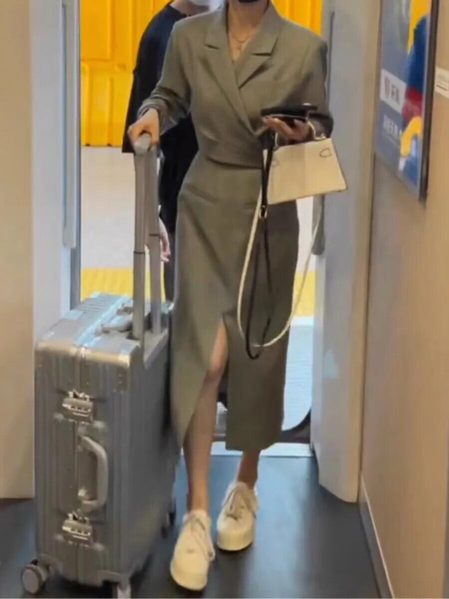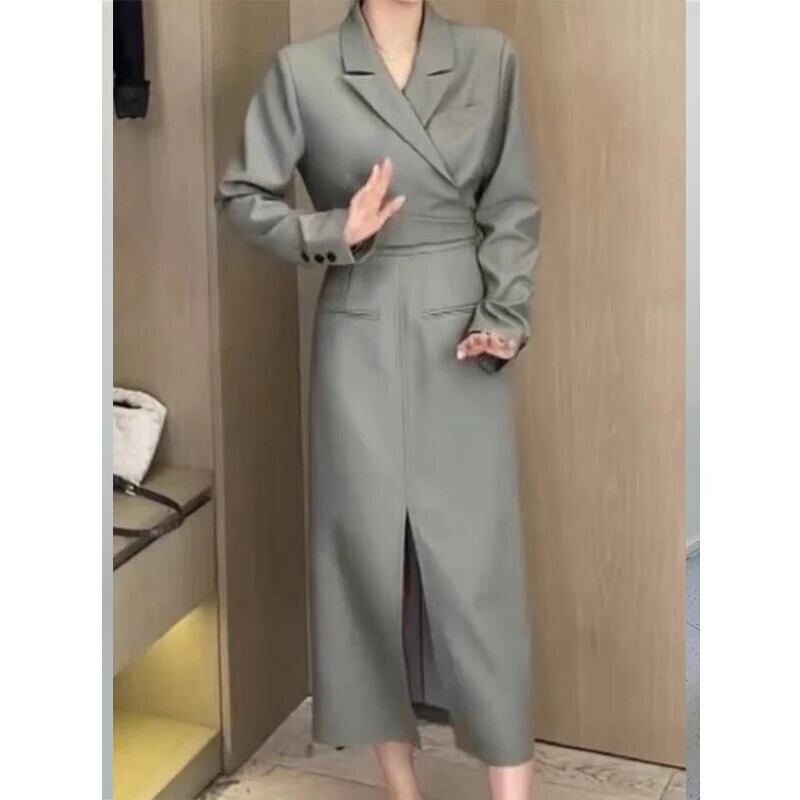 オフィスレディ通勤スーツ レディース秋中袖ショートコート スプリットロングスカート 2点セット オータム 秋物 会社 学校 通勤や通学にも