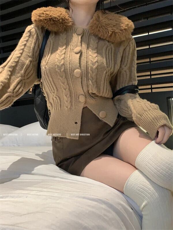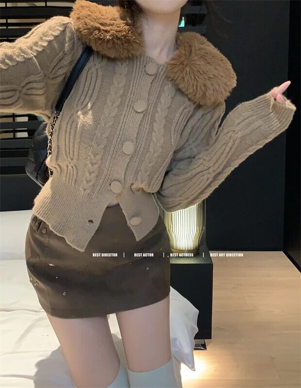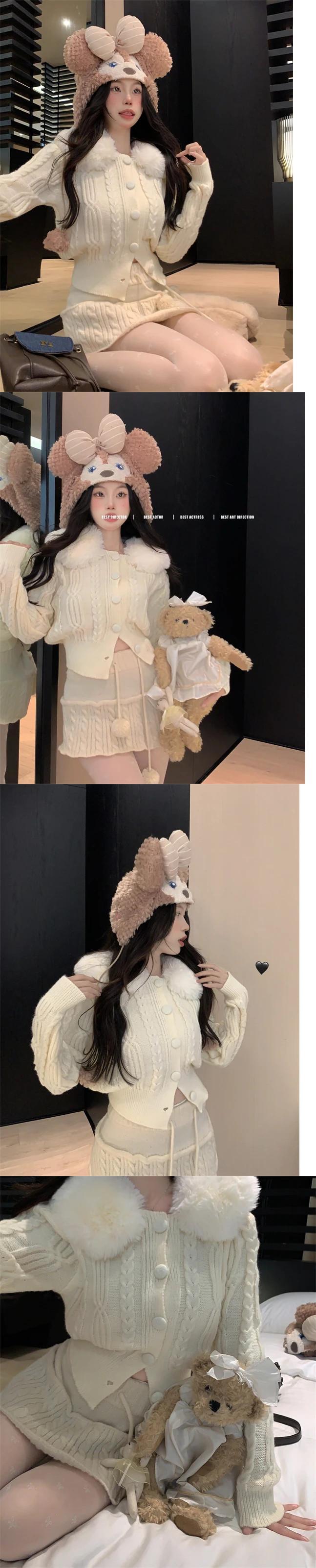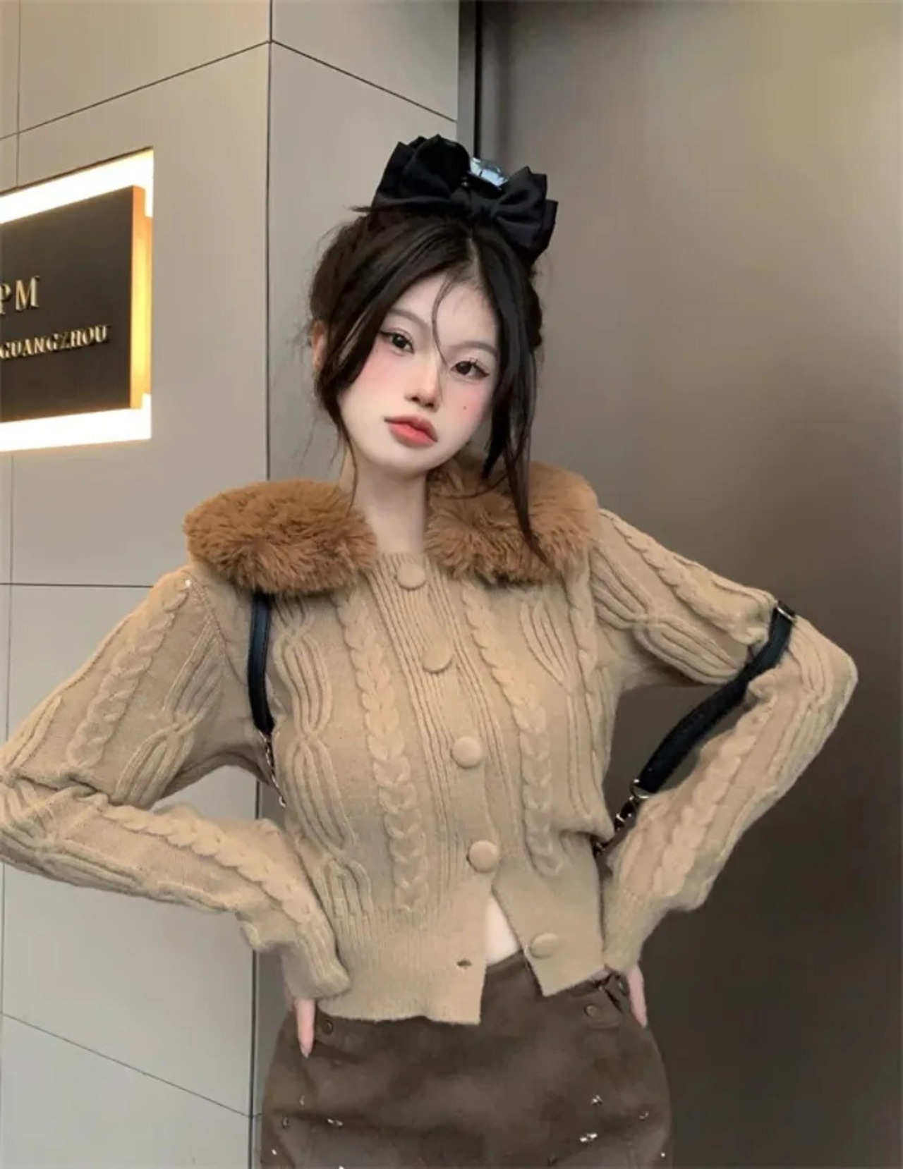 Sweet Girl Twists セーター秋毛皮襟長袖ニットカーディガンショートトップ ロング 大人ガーリー スウィート キュート カジュアル オータム 秋物