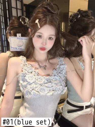スウィートガールラウンドネックノースリーブ三次元フックフラワーセーター秋セクシーニットタンクトップ 大人ガーリー キュート カジュアル オータム 秋物 Oネック フラワーデザイン