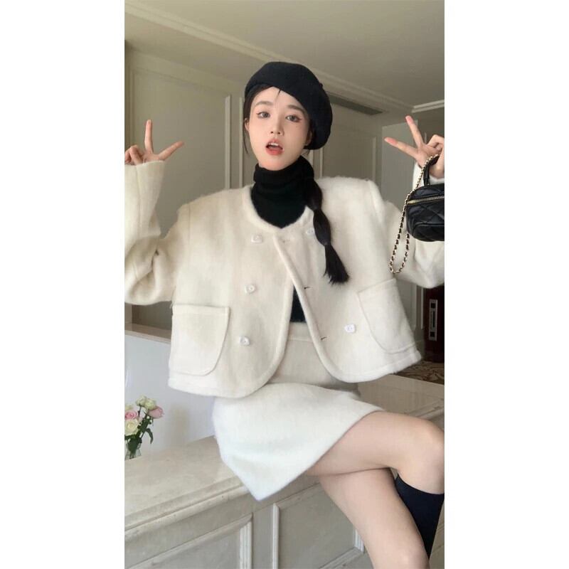 甘いホットガールスーツ秋ルーズスリーブカーディガンコートウエストミニスカートツーピースセット 大人ガーリー スウィート キュート カジュアル オータム 秋物