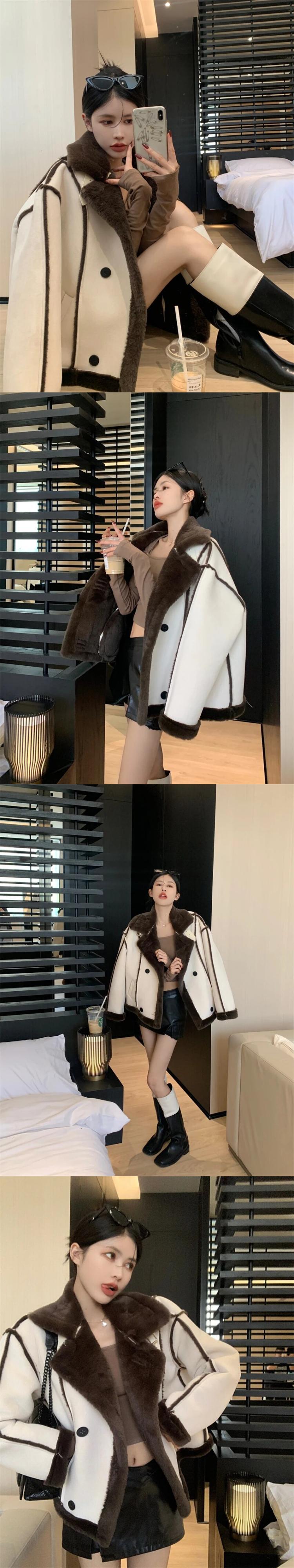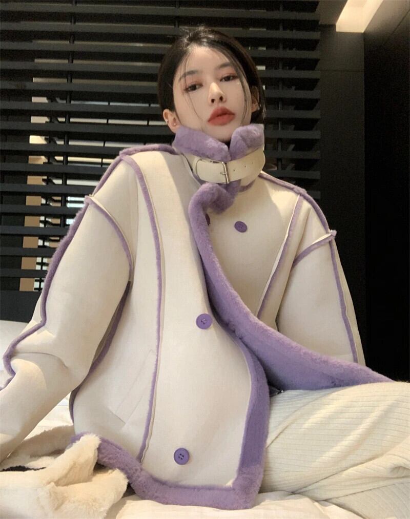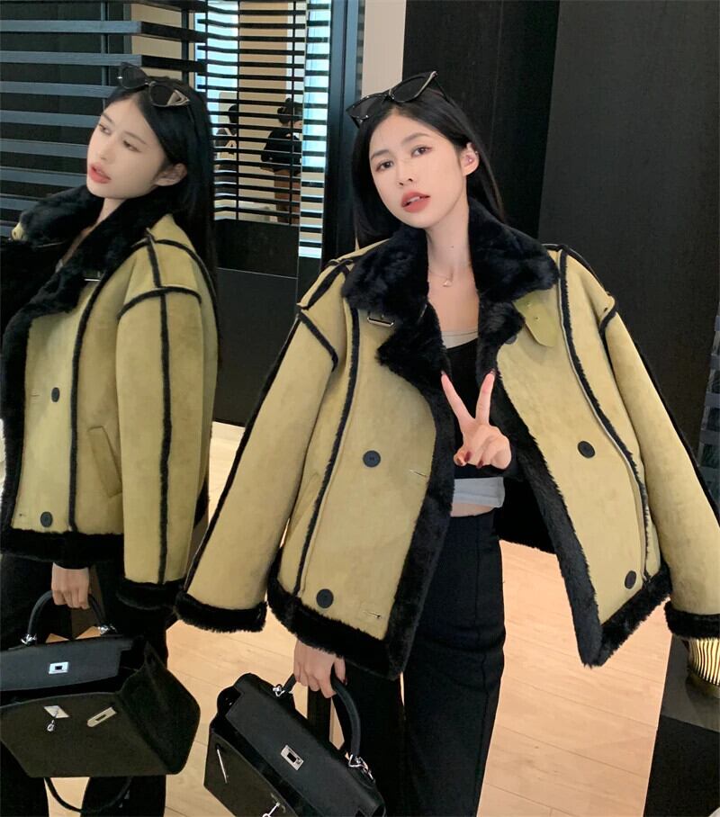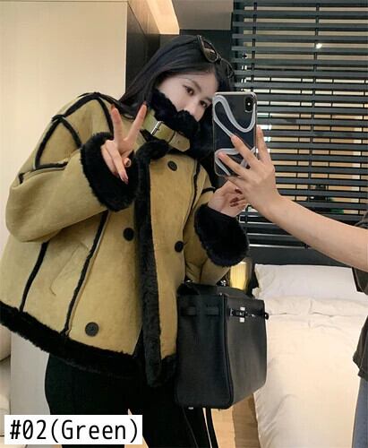 スタイルスイートホットガールパッチワークスエードジャケット冬ショートぬいぐるみと厚いカーディガンコート スウェード 大人ガーリー スウィート キュート カジュアル ウィンター 冬物
