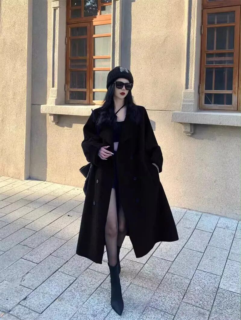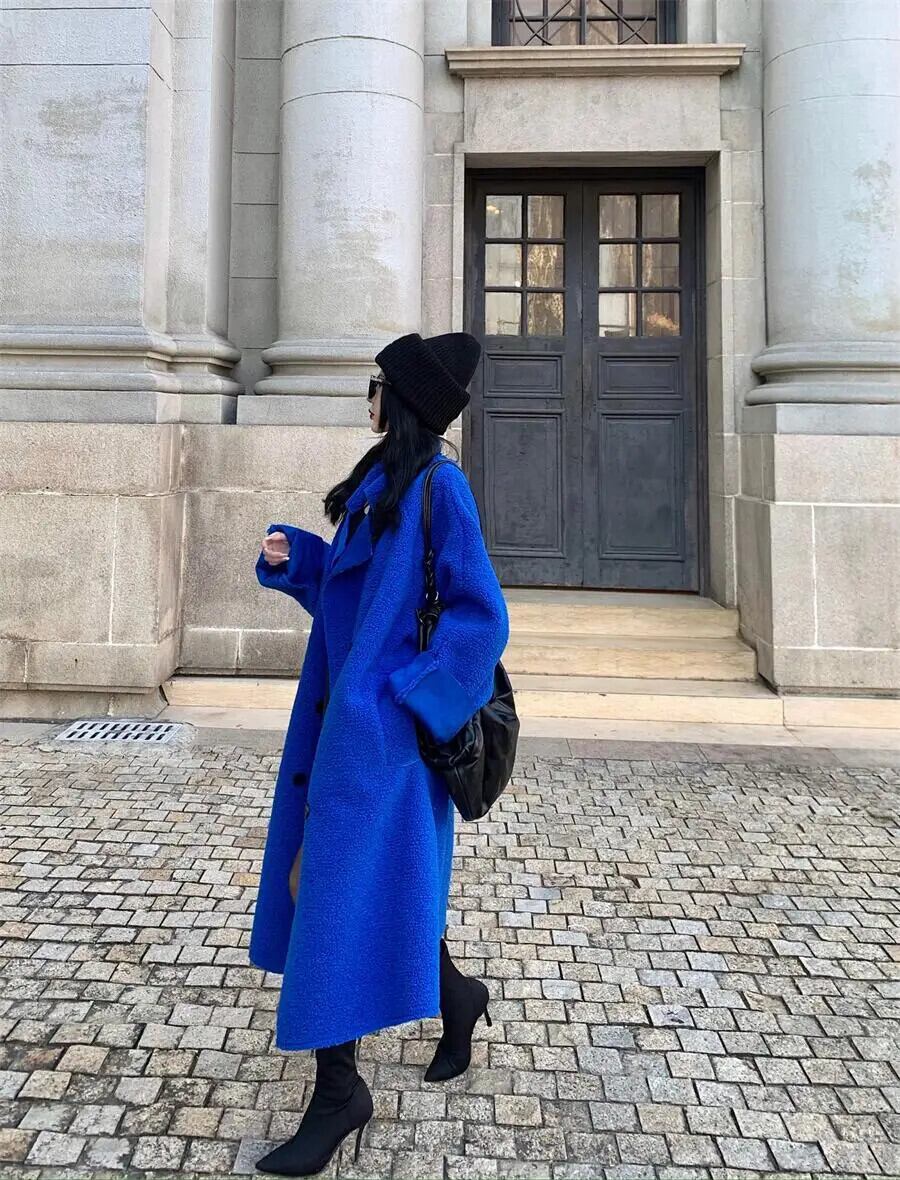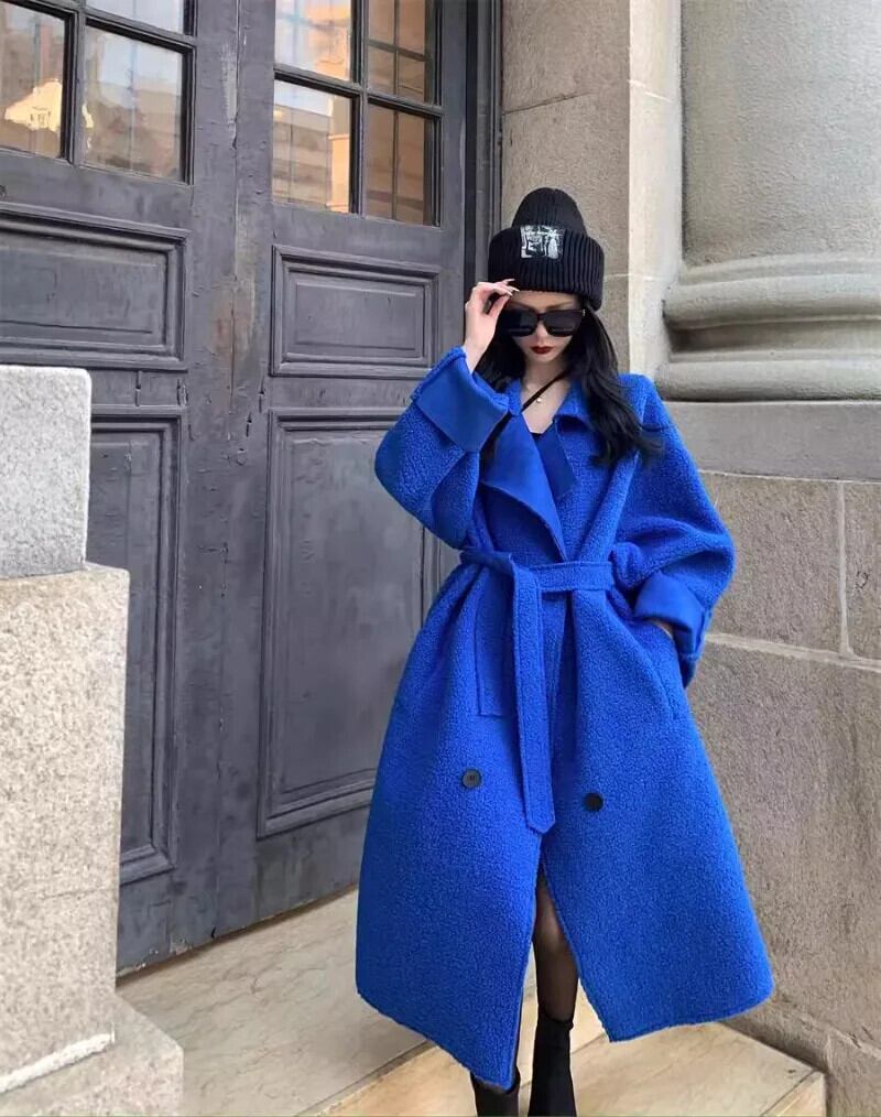 オフィスレディ通勤ルーズラムファーコート秋と冬レースアップロングコート オータム 秋物 ウィンター 冬物 会社 学校 通勤や通学にも