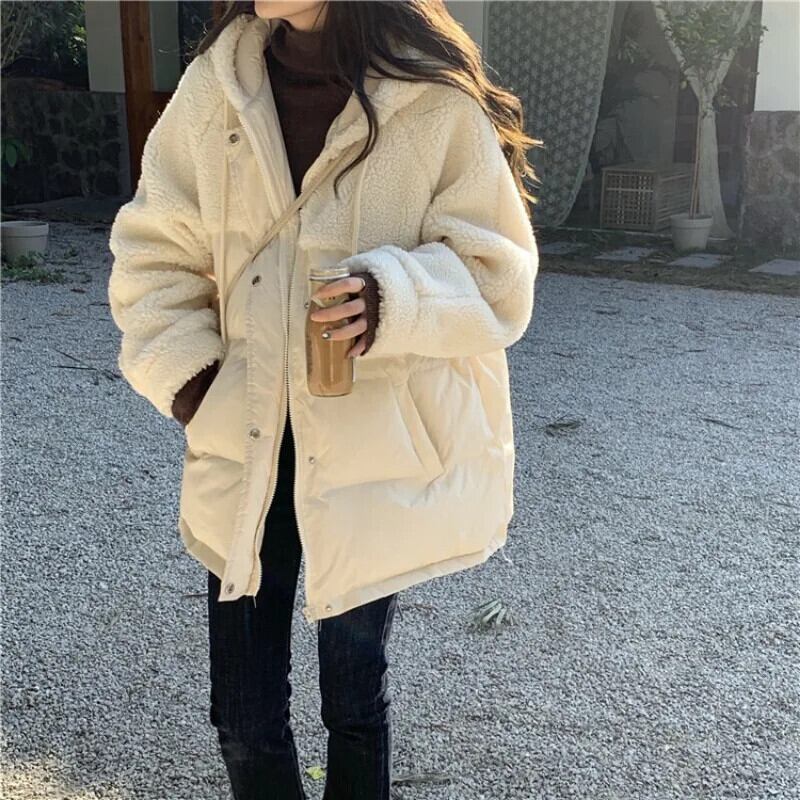 スタイルルーズ暖かい肥厚コットンジャケット冬フード付きパッチワークショートコットンジャケット ウィンター 冬物