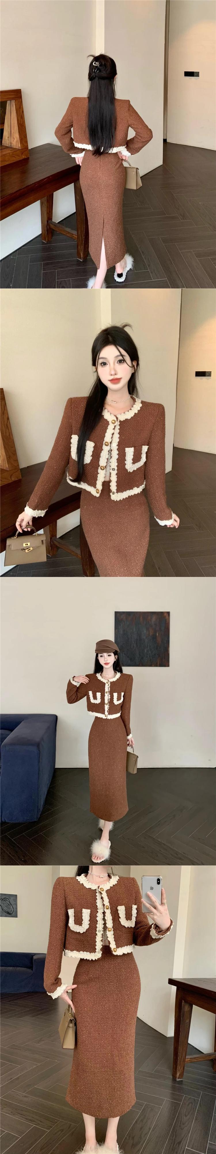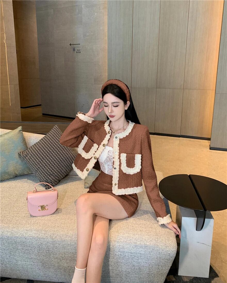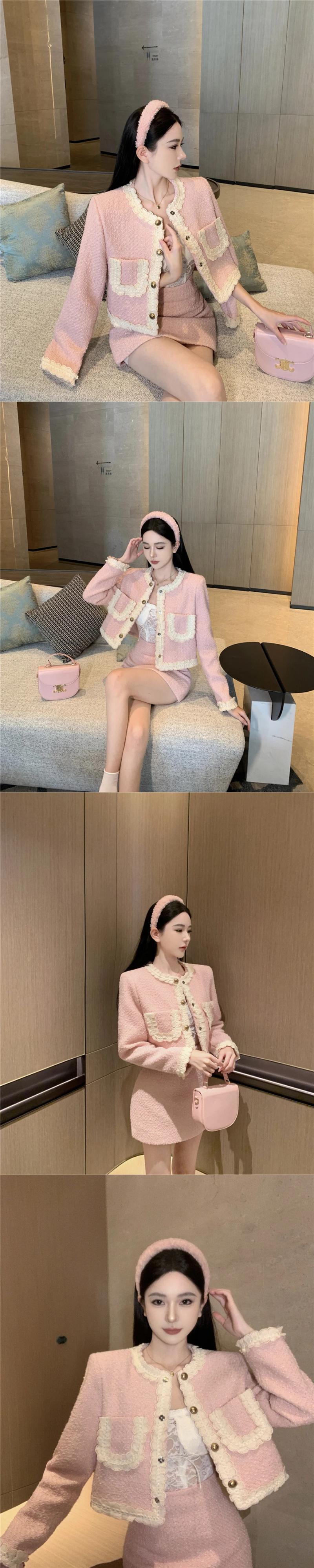 スイートホットガールスーツ秋/冬ツイードショートコートウエストミニスカートツーピースセット 大人ガーリー スウィート キュート カジュアル オータム 秋物 ウィンター 冬物